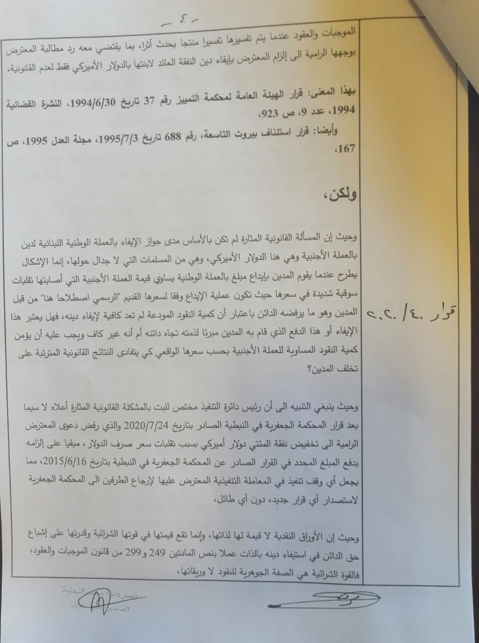 وأساساً وتدوين صحّة إيفاء المعترض بالعملة اللبنانية في إطار المعاملة