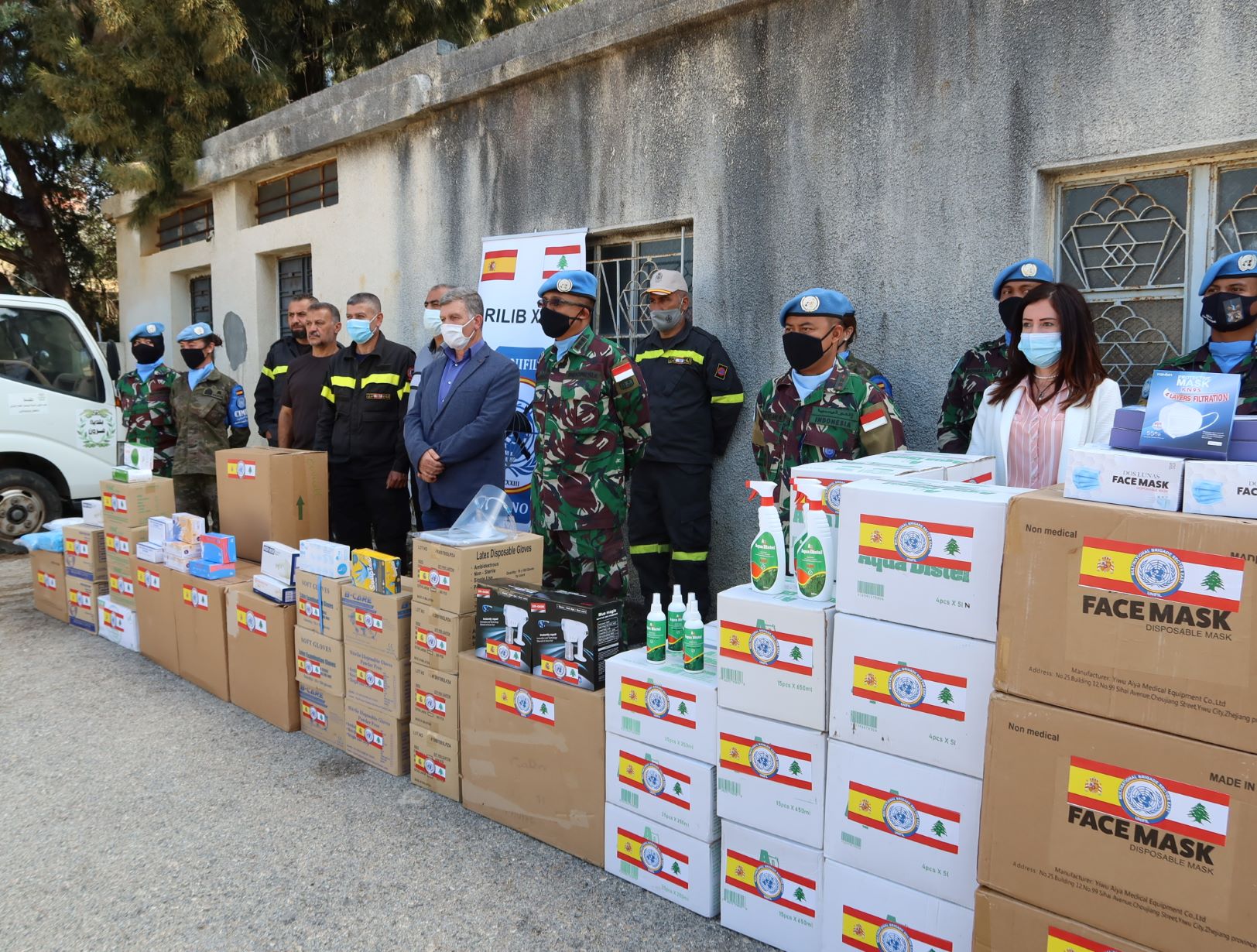واصل جنود حفظ السلام الإسبان التابعون لليونيفيل جهودهم المستمرة لمساعدة المجتمعات المضيفة في المعركة المشتركة ضد فيروس كورونا المستجد COVID-19 من خلال التبرع بعدة معدات لمراكز التنمية الاجتماعية (SDC´s) في فرون (قضاء بنت جبيل) وراشيا الفخار (قضاء حاصبيا) في جنوب شرق لبنان. إن التبرع بمعدات الحماية الشخصية وغيرها من المستلزمات الضرورية لاحتواء الفيروس ، دعماً لوزارة الصحة العامة اللبنانية ، سيفيد أكثر من 17 قرية ومؤسسة حكومية.
