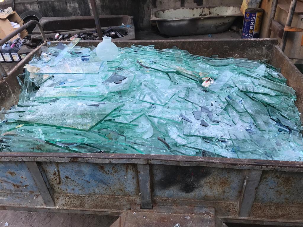 ونحن لا نُصنّع زجاج، بل إعادة التدوير من الكسر المتلوف الذي نحصل عليه من عدة مصادر، بحيث أن الزجاج الخام الذي يستخرج مباشرة من رمل البحر يُصنّع عبر معامل ومعدات خاصة، ويكون لونه صافي نقي جدًا.