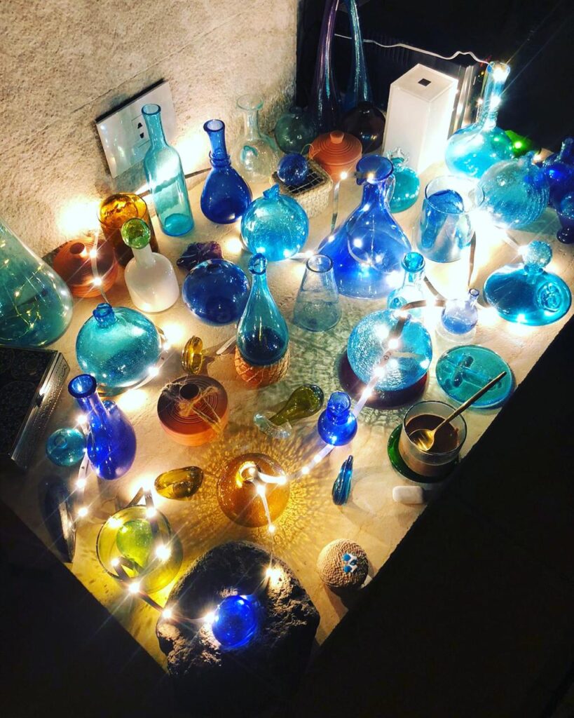 ونحن نُنتج كل ما يلزم من أواني زجاجية للمطاعم والفنادق والأعراس وللشمع والورود وأول قربانة وثريات ولمباديرات وكلوبات ومزهريات وأقداح وقناني مختلفة وقناديل وأرتيزانا بعدة ألوان، وباتت مطلب العديد من الزبائن، والسواح والأجانب.