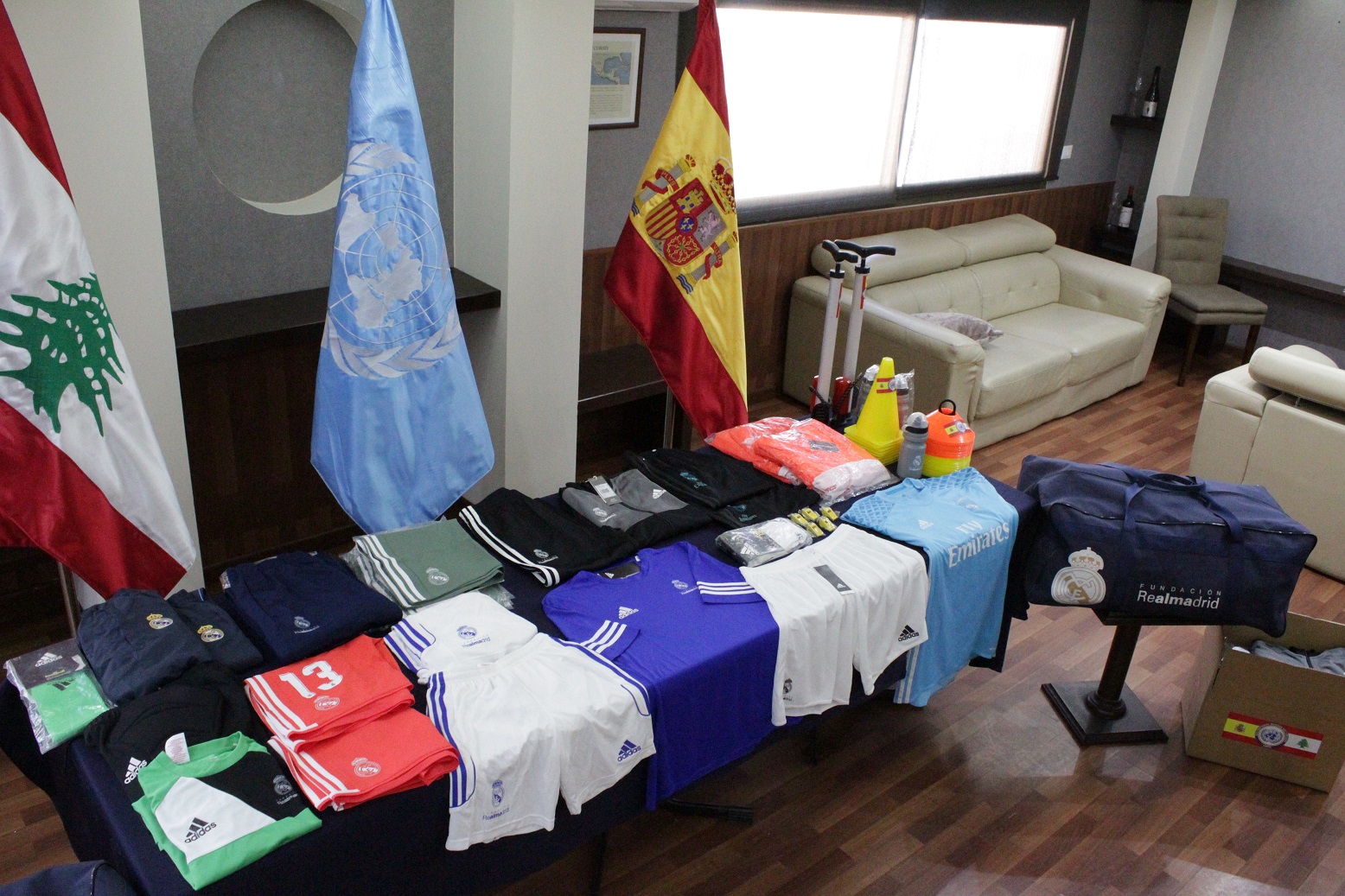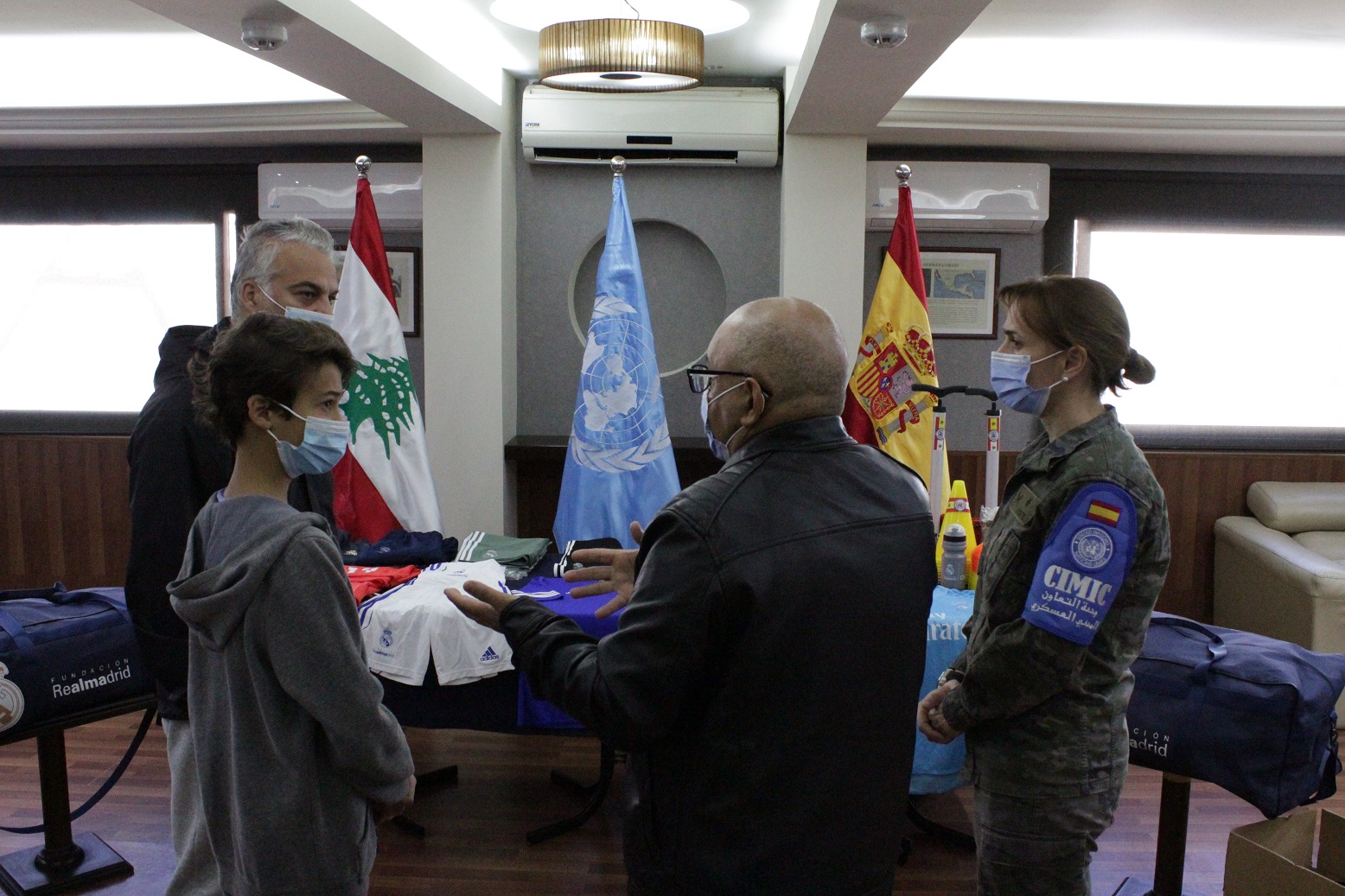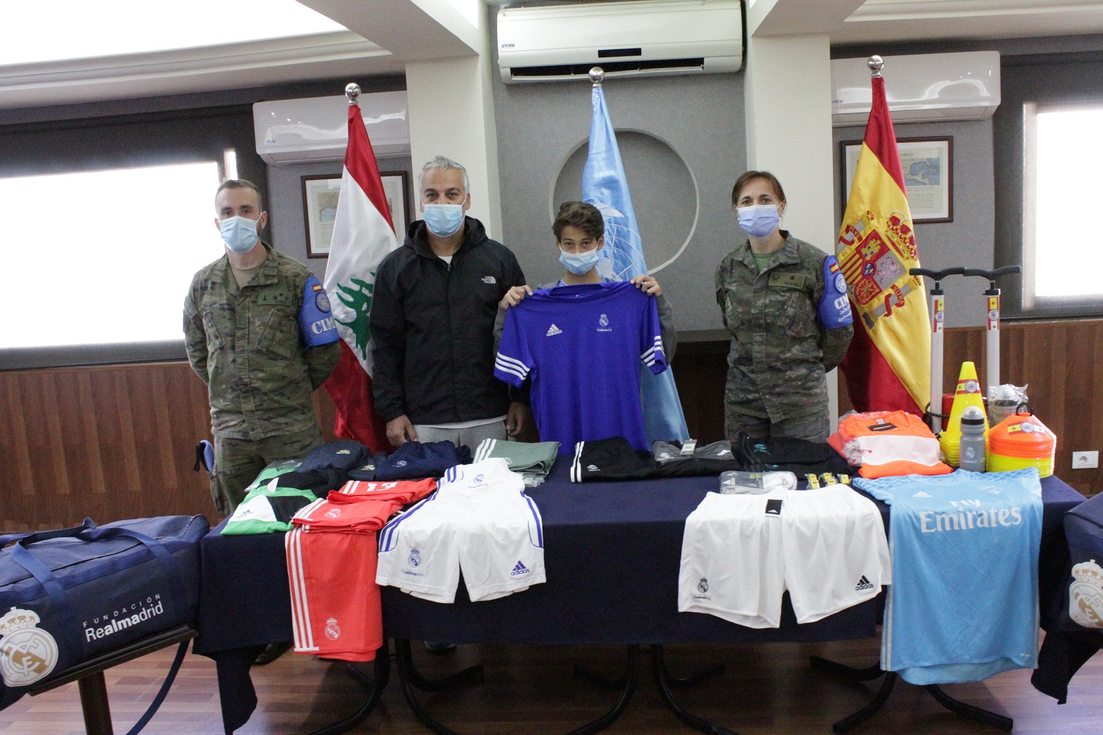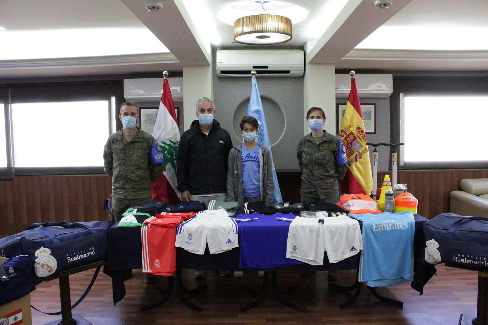 نظرا لجائحة فيروس كورونا المستجد ، تم تسليم الهبة للسيد عصام يوسف مديرالنادي و ذلك في مقر القطاع الشرقي، بحضور مدرب الفريق فقط دون حضور الفريق كامل. خلال هذا الحدث ، أعرب السيد عصام يوسف عن امتنانه للدعم الذي تقدمه قوات حفظ السلام في الكتيبة الاسبانية ، من خلال تجهيز اللاعبين الناشئين بهدف بناء مستقبل أكثر إشراقًا كمستقبل رجل رياضي محترف. كما و أعرب عن تقديره للتفاهم والتعاون المتبادلين بين أفراد اليونيفيل والسكان المحليين.