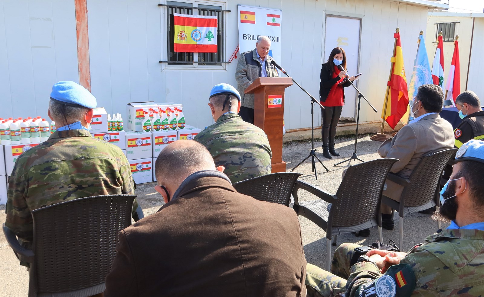 واصل جنود حفظ السلام الإسبان التابعون لليونيفيل جهودهم المستمرة لمساعدة المجتمعات المضيفة والسكان المحليين في المعركة المشتركة ضد فيروس كورونا المستجد COVID-19 من خلال التبرع بالعديد من المعدات والمطهرات لمراكز الدفاع المدني في قضاء مرجعيون ، في بلدة الطيبة في جنوب شرق لبنان. التبرع بمعدات الحماية الشخصية وغيرها من المستلزمات الضرورية لاحتواء الفيروس ، دعماً لوزارة الصحة العامة اللبنانية ،كما وسيفيد أكثر من 9 قرى ومؤسسات حكومية من هذا التبرع.