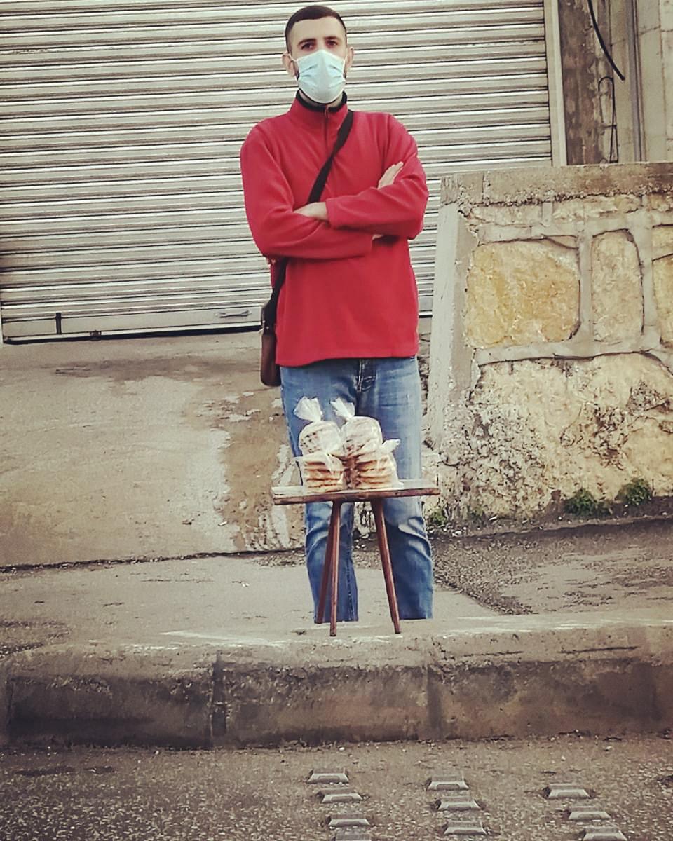 وجد محمود وظيفة في مطبخ في احد مستشفيات النبطية التي تبعد عدة كيلومترات عن بلدته، ومع ذلك قبل بالوظيفة وبدأ العمل، لكن الراتب لا يكفي لان ربع راتب يصرف على تأمين المواصلات، والباقي لا يكفي لتسديد الفواتير الشهرية لاي منزل والمتطلبات المعيشية اليومية. وكان لا بد منه الا ان يحاول ان يستحصل على عمل اضافي لزيادة دخله. فكان المشروع الصغير بصناعة وبيع "كعك العباس" على الطريق.