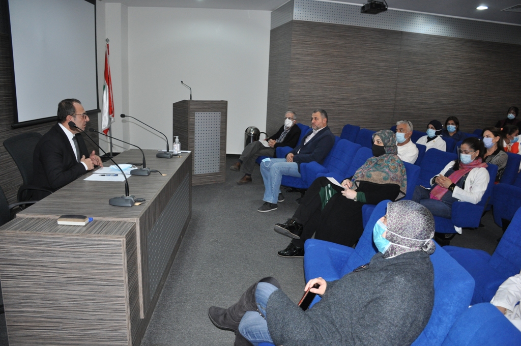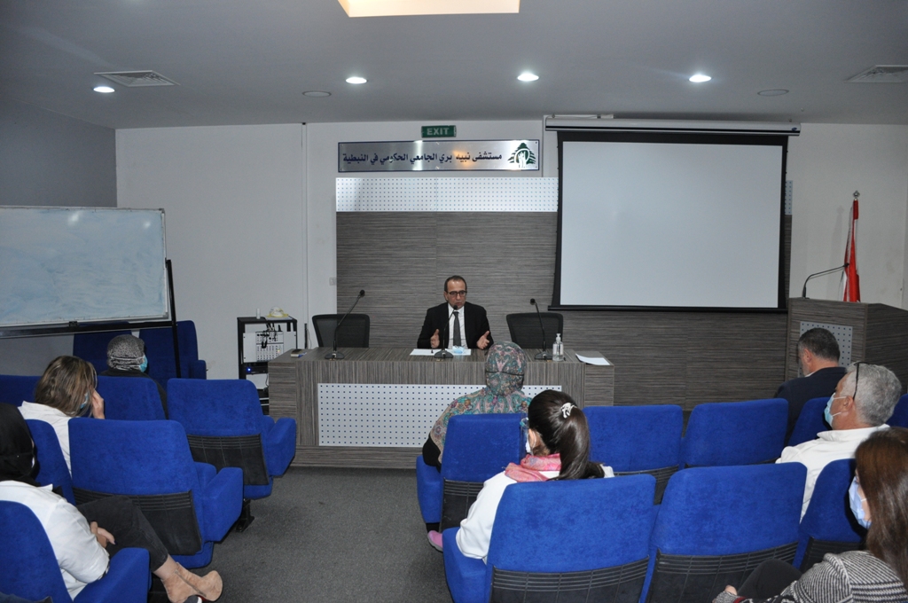 نُظم في مستشفى نبيه بري الجامعي الحكومي في النبطية لقاء بعنوان " كورونا في عام : بين الاداء والتجربة" وذلك في قاعة المحاضرات وحضره رئيس مجلس ادارة المستشفى المدير العام الدكتور حسن وزنة وشخصيات والطاقم التمريضي ورؤوساء الاقسام فيها.