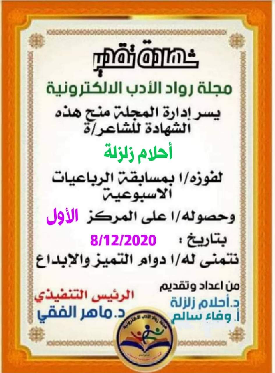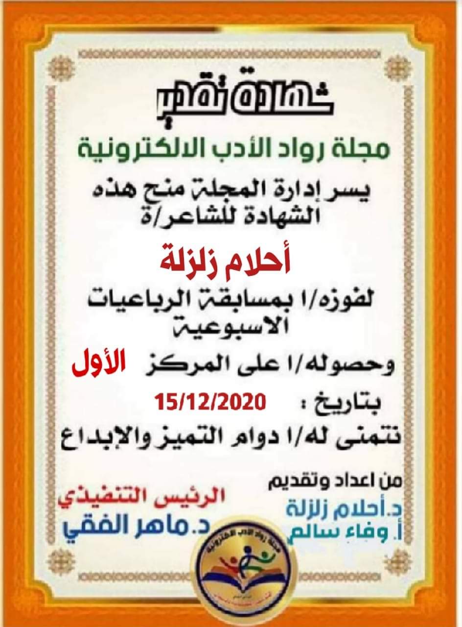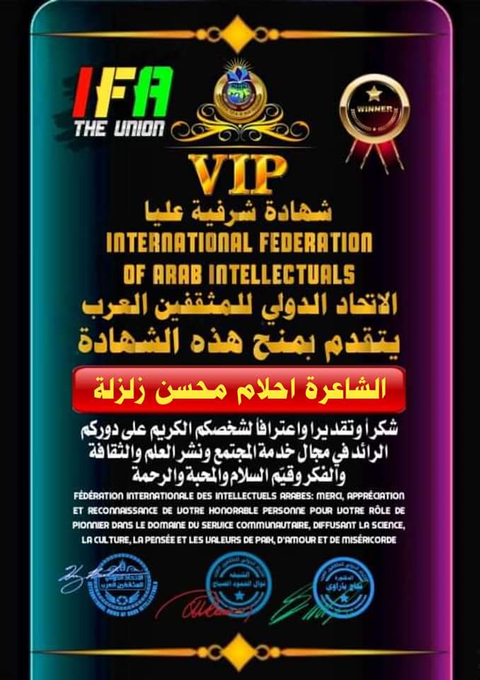 الأستاذة أحلام زلزلة ليست فخراً فقط لبلدتها الخيام أو للجنوب إنما أيضاً لكل الوطن وللثقافة العربية.
