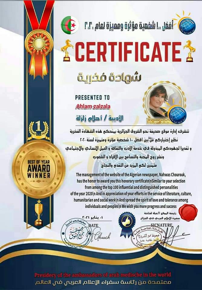 حصلت على المراكز الأولى في مسابقات أدبية على مستوى الوطن العربي.