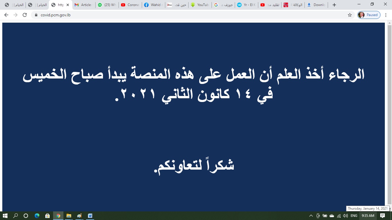 أعلنت رئاسة مجلس الوزراء يوم أمس عن كيفية طلب إذن إنتقال لغير المستثنيين من منع التجول خلال فترة الإقفال العام، وذلك من خلال تقديم طلب الحصول على تصريح تنقل عبر "ملئ استمارة عبر الموقع الإلكتروني covid.pcm.gov.lb، والتأكد من الحصول على الموافقة، على أن يصار لاحقاً إلى إبراز الإذن لعناصر قوى الأمن عند الطلب.
