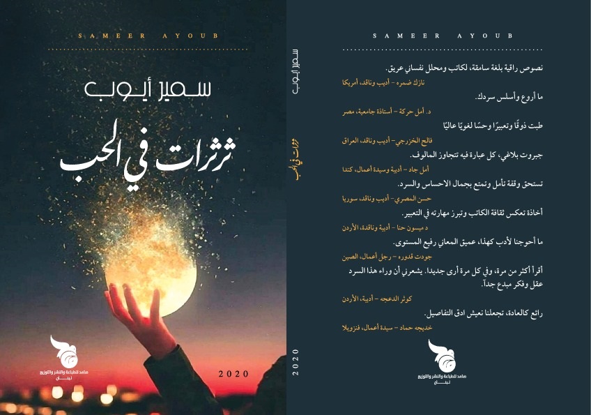 "ثرثرات في الحب " عنوان مجموعة نصوص جديدة للكاتب سمير ايوب وأنا أعتبر ة شاعرا وقاصا وروائيا ، رغم أنه لا يصف ولا يصنف ما يكتبه، هو يكتب فقط، يكتب دون أن يعكر ويفسد الدهشة بلغة التأويل، ولا تهمه الاعتبارات التي ينظر إليها الكتّاب حين يمسكون القلم.