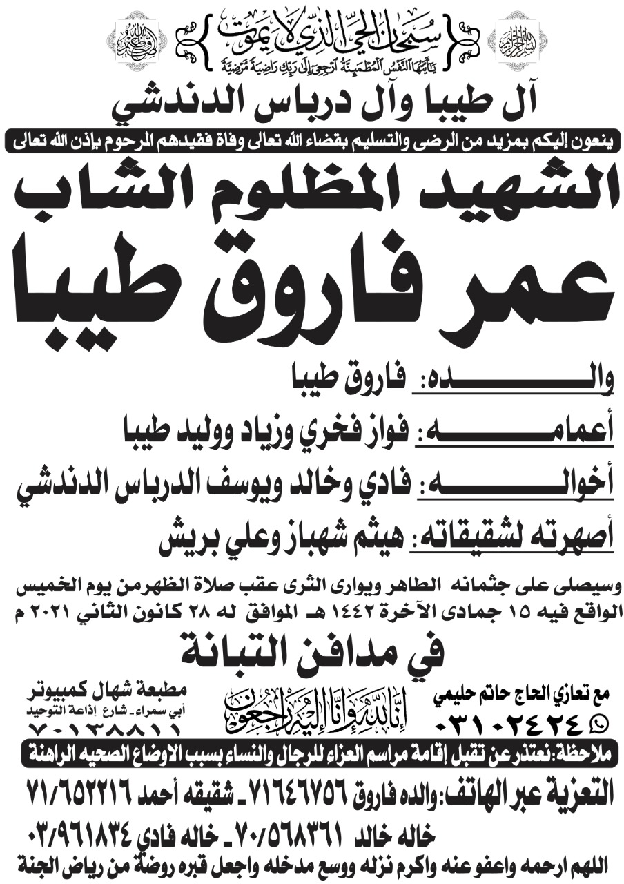 ليس عمر الطيب اول شهيد تقدمه طرابلس في نضالها من اجل معارك الكرامة والخبز ، وضد الحرمان والفقار والتهميش، منذ شهدائها يوم الاستقلال ١٩٤٣ حتى اليوم...