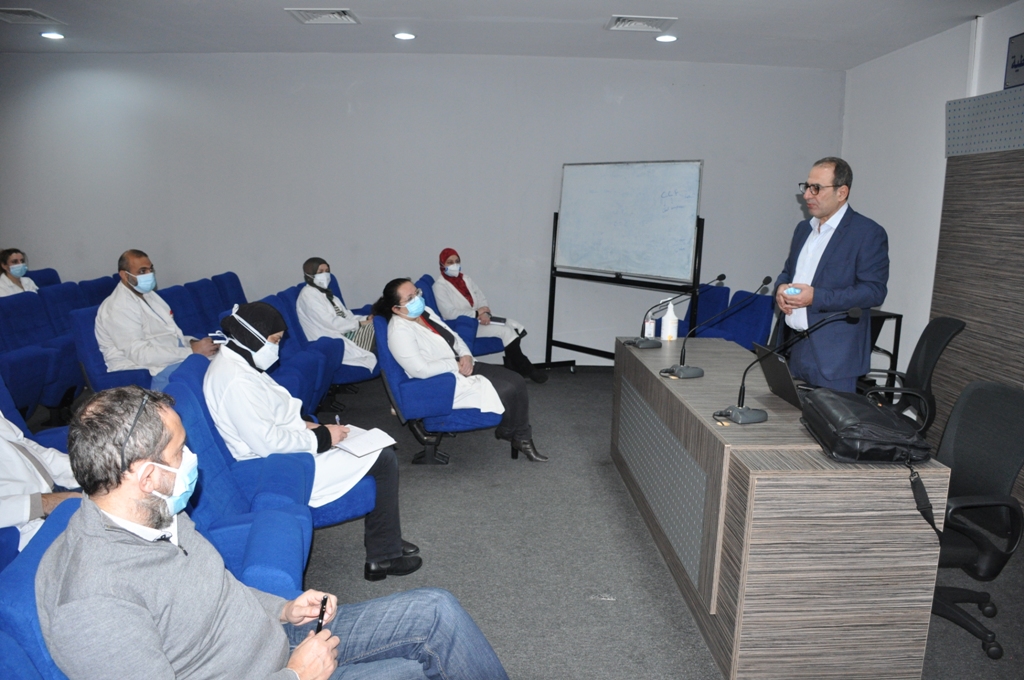 نظم مستشفى نبيه بري الجامعي الحكومي في النبطية ورشة تدريبية "للتوعية عن كيفية استعمال اللقاح عند الطواقم الطبية والتمريضية"، بين فريق من شركة "فايزر" والفريق الطبي والتمريضي المتخصص بقسم كورونا في المستشفى.