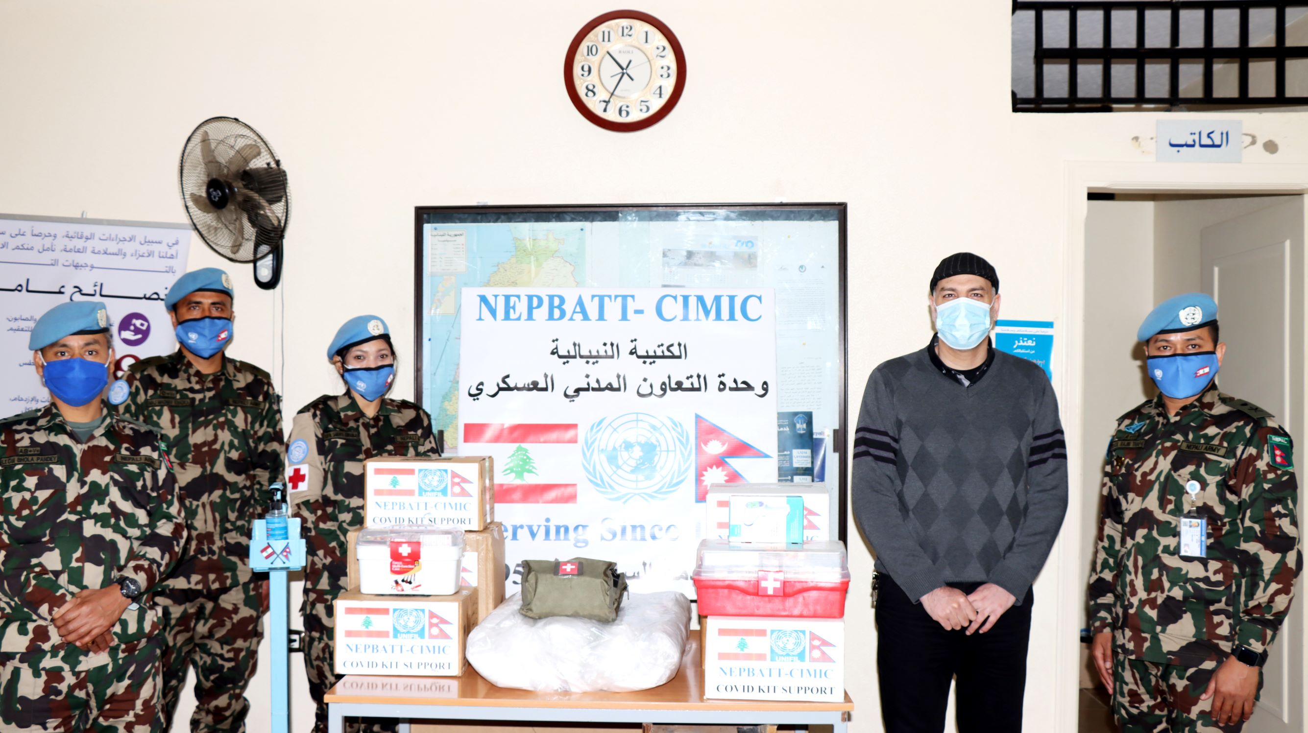أطلقت الكتيبة النيبالية في اليونيفيل حملة لدعم كل البلديات في منطقة عملها في مكافحة تفشي جائحة كورونا، وقدمت حزما إلى هذه البلديات تحتوي مواد للوقاية من انتشار كورونا تتضمن أدوات طبية وصناديق اسعافات أولية ومعدات حماية شخصية ومطهرات ووسائل غسيل اليدين وكمامات وميزان حرارة بالأشعة تحت الحمراء ومرشات.