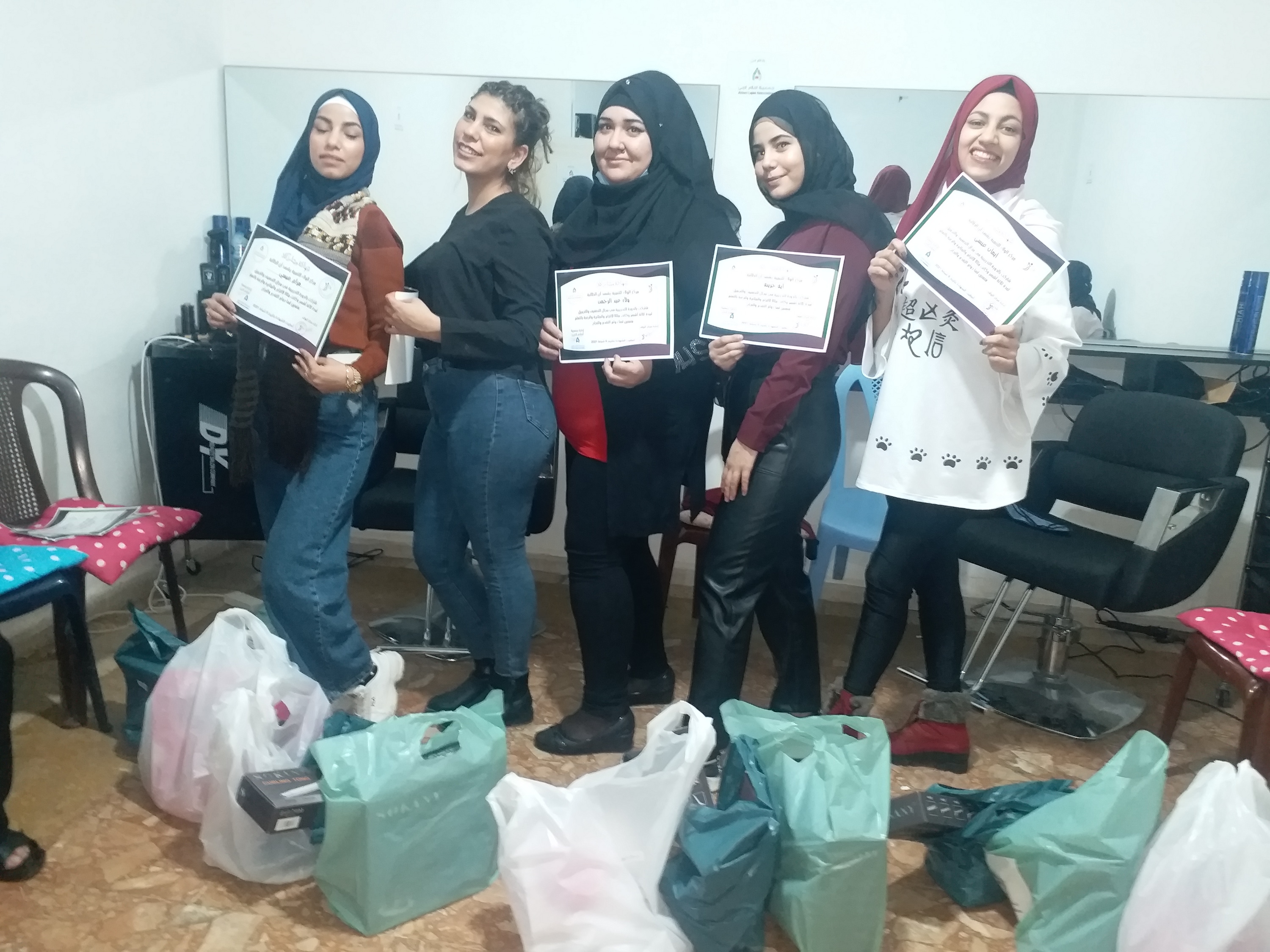 في اطار برنامجه لتمكين المرأة ، اختتم مركز الولاء للتنمية الدورة التدريبية في مجال التصفيف والتجميل والتي استمرت لمدة ثلاثة اشهر بمشاركة ٢٠ امرأة وبدعم من جمعية احلام لاجئ