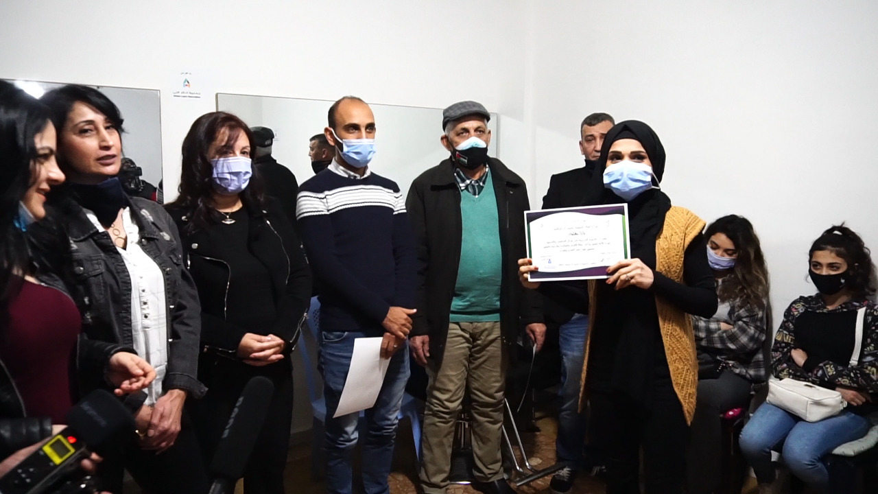 بعدها تم تسليم الشهادات لجميع المشاركات ، تبعها تسليم المعدات اللازمة لاطلاق المشروع الخاص لاربعة نساء من المشاركات اللواتي ابرزن تطورا والتزاماً كاملاً طوال مدة الدورة ، اضافة الى مكافآت مالية لكافة المشاركات تقدمة الحاج يحيى سريس
