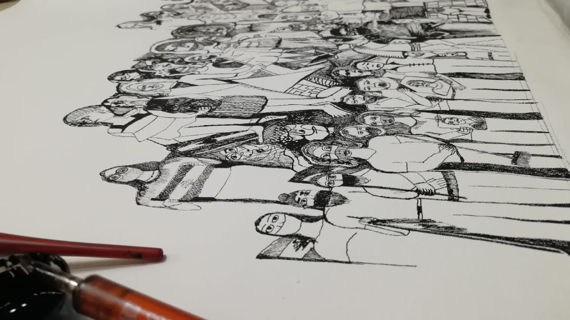 حوّلت ساعات الليل قنديل أيامها. وأسماء الشهداء مُتوغلة في لوحة النُزهة اللبنانيّة. والرموز التي توسّلتها عساكر فيها هي الخط. وتقنية الحبر على الكانفا صعبة. تعتمد على العمل المباشر، 'وما فيكي تلعبي بالحبر كمادة'. خطأ صغير و'بتنتزع اللوحة'. بنت اللوحة بسكينة. الحبر الصيني يحتاج إلى الكثير من التركيز. الفكرة كانت 'تتغندر' مع يد ديانا، ملكة الأشياء الكبيرة التي تقرأ وتثقف نفسها وتكدّس الشهادات الجامعيّة. والحبر الصيني ينساب بيدها، 'متل كأني عم خيّط. عم حيّك'. نحن جميعاً 'مربوطين ببعضنا. هذا يبحث عن فقيد، هذا يُزيل الركام، وهذا يُساعد'. في منزلها محترف حميم تحتمي فيه من غارات الواقع. ولكنها، عندما قررت إنجاز اللوحة، اختارت غرفاً أخرى في المنزل. خرجت من الحميميّة إلى الضوء. وأحاديثنا الليليّة كانت مسليّة. مُشوّقة. ملكة الأشياء الكبيرة 'بتفهم بكل شي'. وعندما قررت إنجاز اللوحة 'بلّشت حيّك. كيف بتحيّكي القطبة وبتطلعيها؟ هيك بيشبه شغل الحبر'. المسألة أشبه بالرقص. بعض نعومة. بعض صلابة. وديانا، أو 'ديدي' للأصدقاء، أنجزت لوحتها خلال أسبوع. و'أنا ما بعرف وقّف وقت بلّش إشتغل'. عادةً تعمل خلال ساعات الليل الطويلة. 'أفكر كثيراً خلال الليل'. تكتب مذكراتها. تُخطّط للوحاتها المُستقبليّة. تهتم بتكوين اللوحة. تُشاهد كل أسبوع ما يُقارب الـ20 شريطاً وثائقياً، 'أعشق المعرفة. من دون معرفة، الفن ما إلو طعمة'.