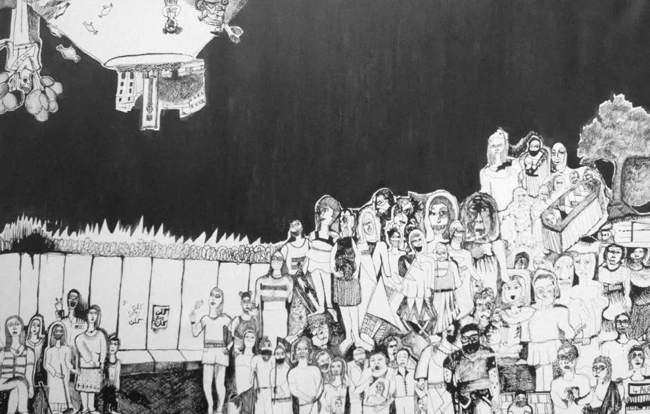 ملكة الأشياء الكبيرة. وطعم الليالي الطوال. والشابة يحق لها تحصين نفسها من غارات الواقع. الخلق دون قيود. والمعرفة قنديلها الذي تُضيء من خلاله أيامها. والليالي طويلة. والشابة لا تنام بفعل داء الربو الذي حوّلت هزّاته الارتداديّة قنديل أيامها. تُهدهد من خلاله غارات الواقع. وانفجار المرفأ، 'حرقني. بتعرفي إنّو حرقني؟ ضلّيتني على شهرين كل يوم إبكيلي شي 3 – 4 ساعات. Dans Le Minimum. وصلت لمرحلة بس عم نام عم شوف إنفجار. بس عم بوعى عم ضلّني فكّر بالإنفجار'. أجبرت نفسها على إدارة ظهرها للأخبار. والليالي طويلة. وملكة الأشياء الكبيرة حوّلت ساعات الليل التي لا تنتهي كتابها المليء بالفصول الإبداعيّة. فنانة شابة تُتقن جميع لغات الألوان. والانفجار 'خرقها'. ولوحة الأسبوع اخترناها من كتاب هذه الشابة المُلقبة: ملكة الأشياء الكبيرة. عنوانها:La Balade Libanaise (النُزهة اللبنانيّة). شاركت الشابة المُتعددة الموهبة ديانا عساكر من خلالها أخيراً في معرض Art Unsuspended الجماعي في غاليري 'ميشن آرت'. تم بيعها لسلطان سعود القاسمي – مؤسسة برجيل للفن – الشارقة. اللوحة تُلخّص ذاك المساء التاريخي، وكل ما حصل بعد ذلك. هؤلاء الذين تظاهروا، والذين انتقلوا إلى دنيا الحق، والذين يرثون من أحبوا، والذين انهمكوا بإعادة البناء، والذين ركزوا على التصوير، والسياج حاضر. وملكة الأشياء الكبيرة تقرأ وتُثقف نفسها على جميع الأصعدة. تُتقن صنع المربى، والخبز الطازج. وهي ملكة في تفكيك رموز علم الأرقام وعلم النفس... وتصفيف الشعر. واللوحة أنجزت بواسطة الحبر الصيني على الكانفا. وفيها أيضاً ومضات من 'إيام زمان' في ساحة النجمة. الأولاد يلعبون على دراجاتهم الصغيرة. وبائع البالونات 'معجوق' بهم. وفي اللوحة تعتمد ديانا على المفاهيمي والساذج. إيصال الفكرة من خلال الرموز الكونيّة. والليالي طويلة. أحاديثنا كانت مُشوّقة. نسينا من خلالها غارات الواقع. كانت تمتد أحياناً حتى الثالثة من بعد منتصف الليل. الشابة 'بتفهم بكل شي'.