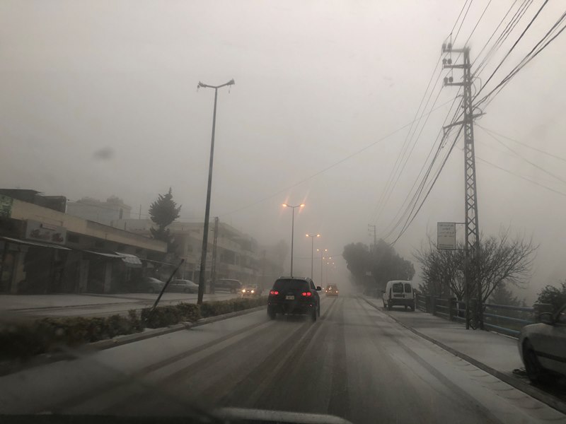 وترافقت العاصفة مع انخفاض كبير في درجات الحرارة ورياح شديدة احيانا وضباب كثيف حجب الرؤية.