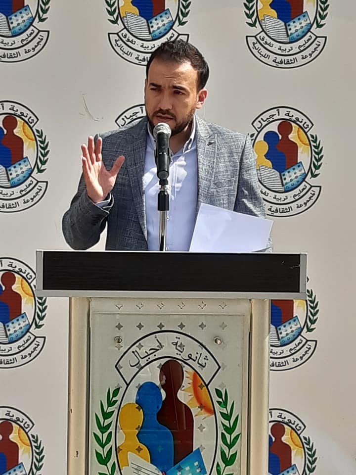 كما كانت كلمة للاستاذ حيدر باسم المجموعة اللبنانةي الثقافية وجه فيها التهنئة " لمن يعطون بكل عزم، عطاء لا محدود، والعطاء من سمات الالوهة، ويجسدها المعلم كل يوم لان نظام الحياة هو الاخذ والعطاء، واليوم بعد الكورونا ومعاناتها وبعدما فرض على الجميع التعليم عن بعد والتعليم المدمج هما تجاوب جديدة في العطاء ، لهما نكهة خاصة ، حلوة ومرة ومتعبة ، وبسيطة ولكن ما فرض علينا هو للتجدد ، التجدد للمعلم وللمتعلم وهنا باسم المجموعة الثقافية اللبنانية نثمن عاليا هذه التجرية ، نجاحا باهرا واتقان ، لان الاتقان هو العمل المتكامل بعناصره ، فكل التقدير لكم ، الهيئة التعليمية والادارية جميعا ، والتقدير لمدير الثانوية ، فبعطاءكم المتجدد وجهودكم جميعا استطاعت الثانوية القيام بواجبها الرائد، فكل عام وانتم بخير