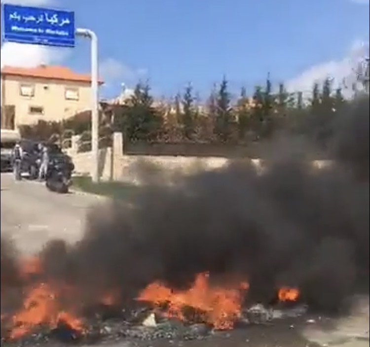 وطنية - مرجعيون - قطع محتجون الطريق العام عند مدخل بلدة مركبا بالاطارات المشتعلة، احتجاجا على تردي الاوضاع المعيشية وارتفاع سعر صرف الدولار.