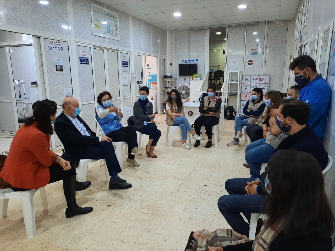 كما رافق الدكتور كامل مهنا الوفد في جولة إلى مخيم سدردا غير الرسمي الذي يحتضن حوالي 1500 نازح سوري يعانون من ظروف مأساوية، وتحدثوا معهم حول أبرز التحديات التي تواجههم وعن دور مؤسسة عامل في التضامن معهم والاستجابة لحاجاتهم، وتفقدوا عمل العيادة النقالة التابعة لمؤسسة عامل التي تجول في المخيم بهدف توفير الحق في الصحة وحالياً مراقبة ومنع تفشي جائحة كوفيد19 بين النازحين.