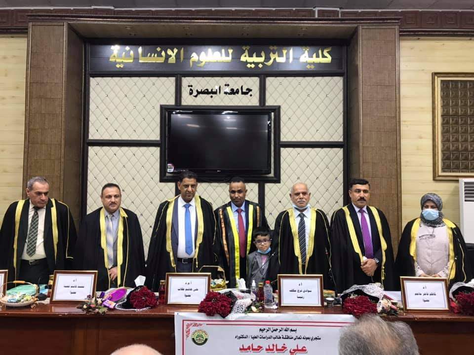 أشرف على الباحث في أطروحته هذه الدكتورة نجوى محمّد جمعة من جامعة البصرة، في حين تكوّنتْ لجنة المناقشة من كل من: د. نجوى محمد جمعة من جامعة البصرة/ عضواً ومشرفاً، ود. سواديّ فرج مكلف من جامعة البصرة/ رئيساً، ود. كاظم فاخر حاجم من جامعة ذي قار عضواً، ود. محمد قاسم نعمة من جامعة البصرة عضواً، ود. علي هاشم طلاب من جامعة المثنى عضواً، ود. علي عبد رمضان من جامعة البصرة عضواً.