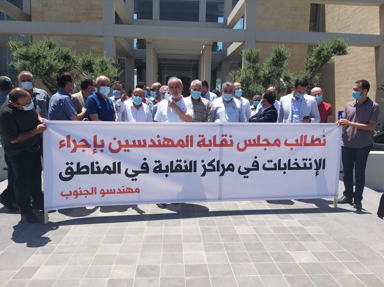 نفذ مهندسو منطقة النبطية وقفة نقابية احتجاجية امام مبنى النقابة في مدينة النبطية لمطالبة مجلس نقابة المهندسين بإجراء الإنتخابات المقررة نهاية الاسبوع الحالي في مراكز النقابة في المناطق تبعا لسكن المهندسين لتخفيف الأعباء والتنقل عنهم حيث لا يوجد اي مبرر لإنتقالهم الي بيروت للإدلاء بأصواتهم في هذه الظروف مع وجود المراكز في اكثر المناطق ومع سهولة اتخاذ الإجراءات لإجراء الإنتخابات مناطقيا.