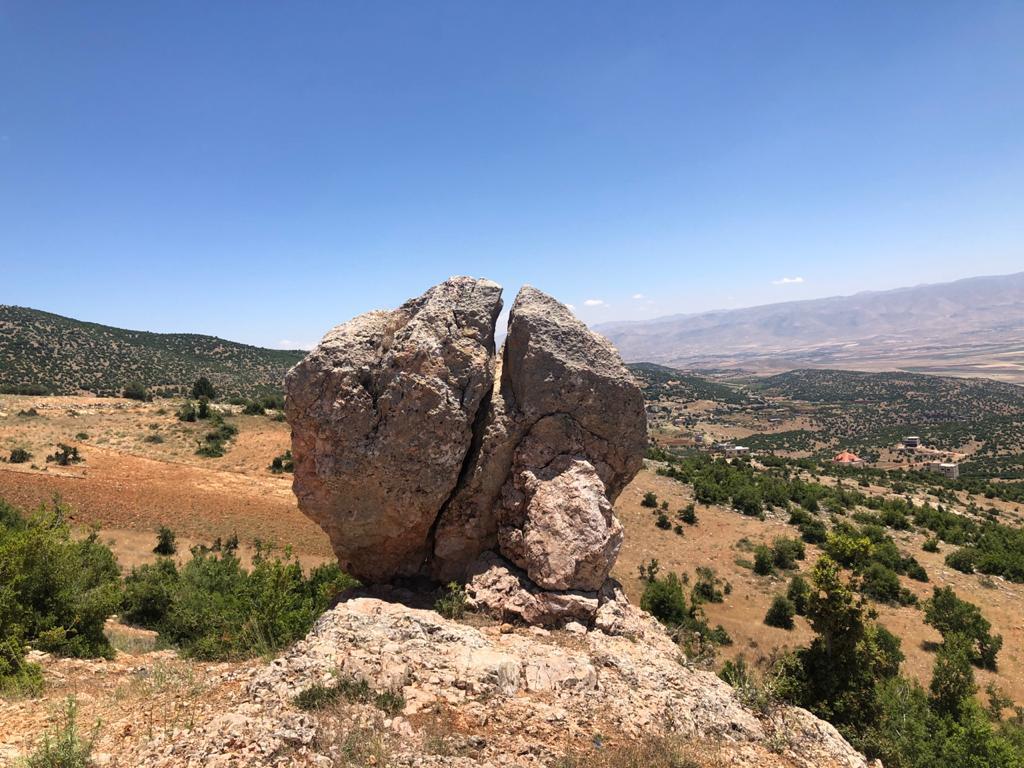 عائلة من لبنان (حبشي) مع منظر عام للبلدة من الجو