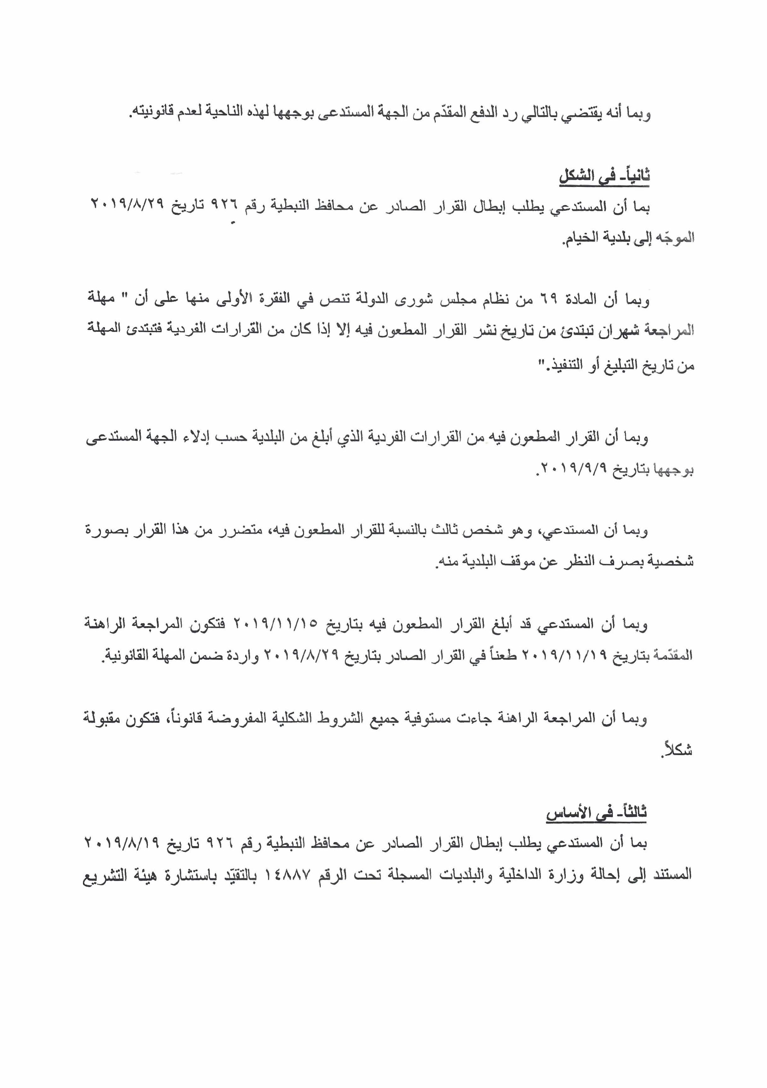 أدناه، صور القرار الصادر عن مجلس شورى الدولة