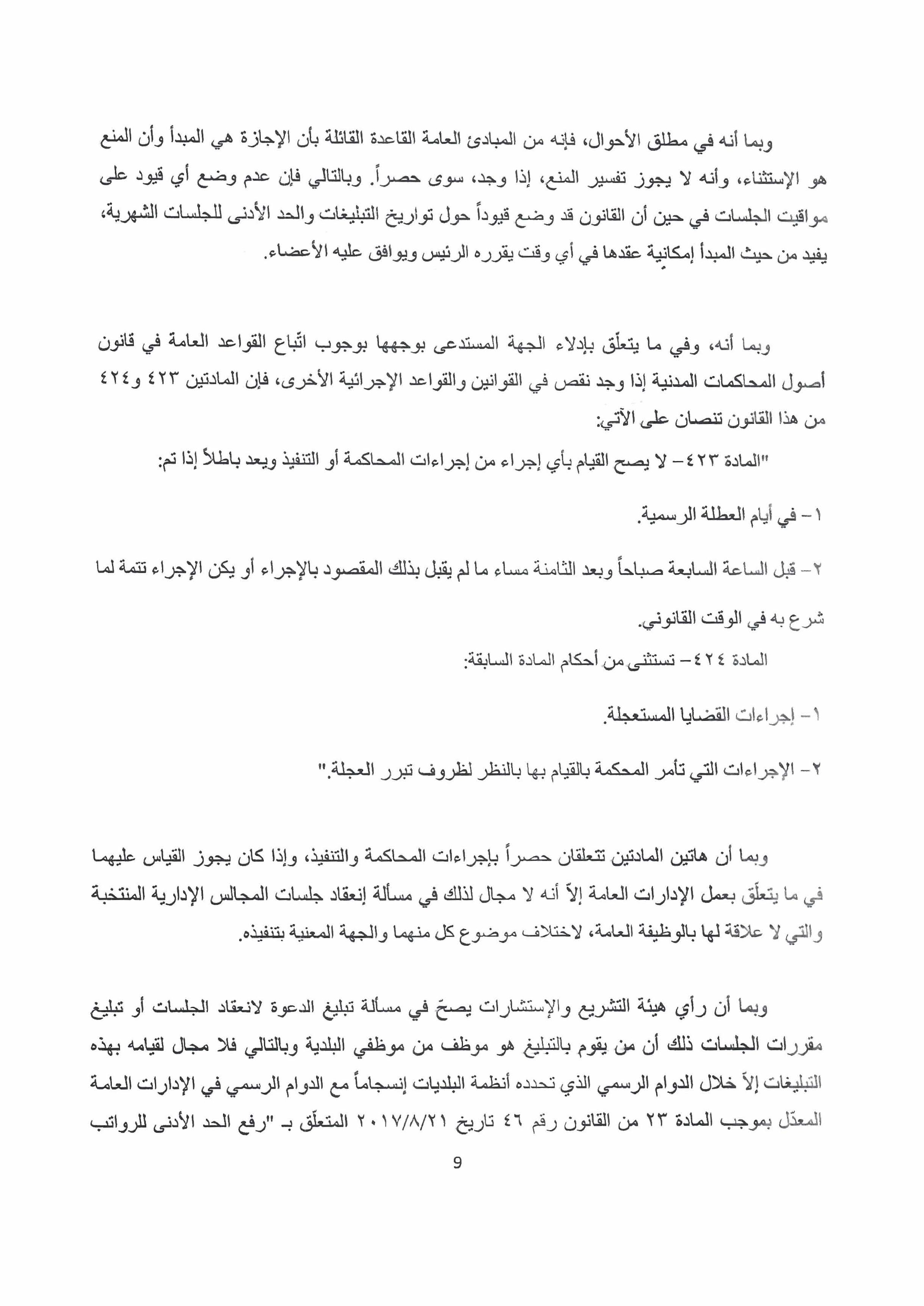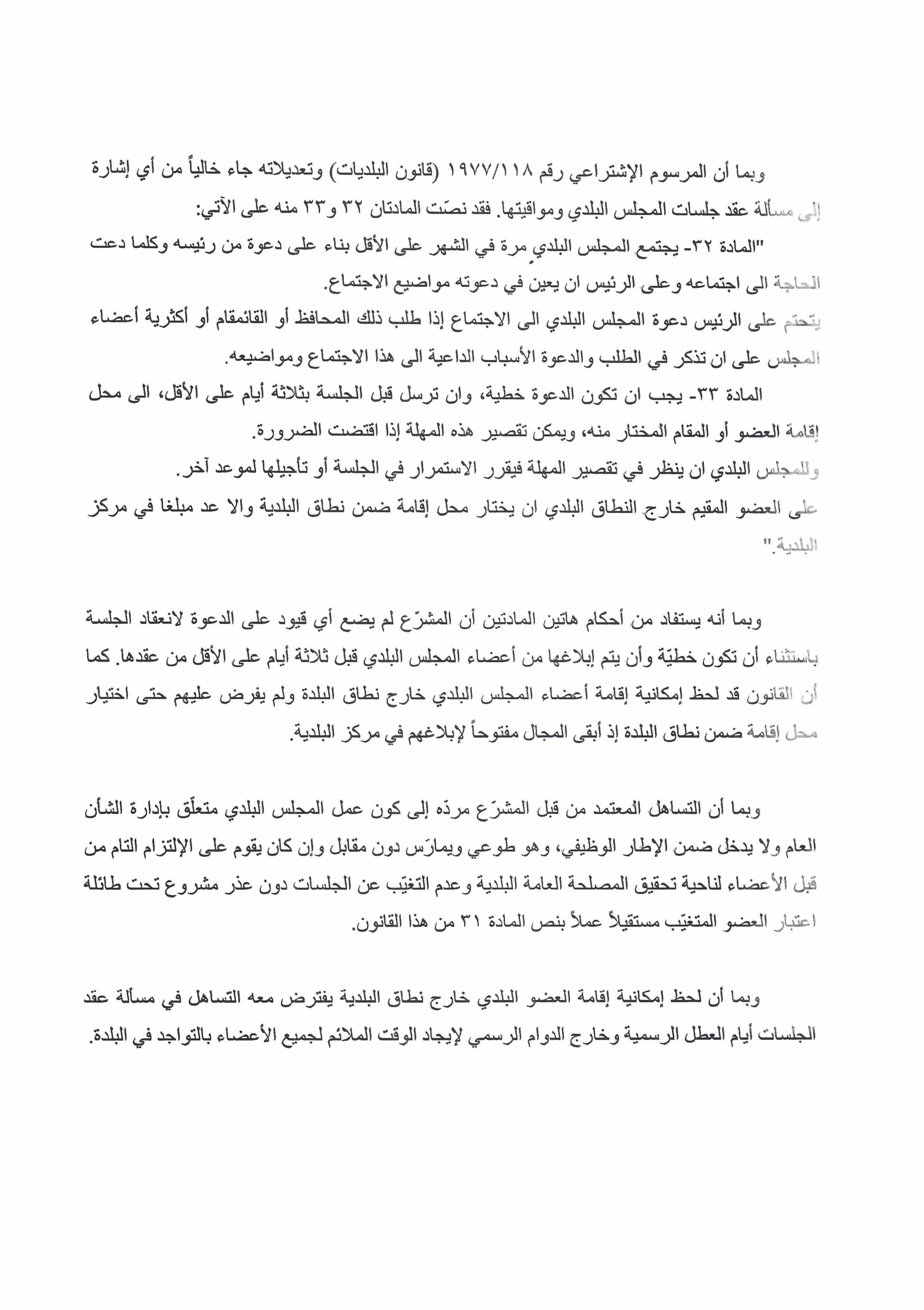 ان تعطيل جوهر القانون بعمل المجلس البلدي وعدم معرفة لبه من قبل مدعي معرفة القانون وتفسيره قد جعل الادراج مليئة بالمشاريع والدراسات المعطلة ومقبرة للأفكار المبدعة والخلاقة في فتوى عدم الزامية التنفيذ التى ما انزل الله بها من سلطان .