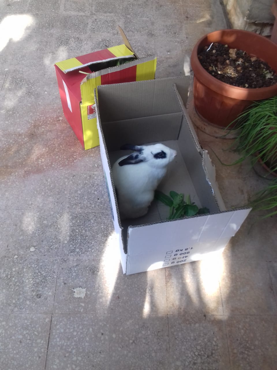 بلا طول الشرح.. العنوان بحير.. بس إنساني بالنسبة إلي.. اليوم بطلة قصتي (ارنبة)لما جبتها عالبيت بطلب من احفادي كان عمرها شهر..وحجمها اكبر من الكف شوي..واليوم كملت عامها الاول تحت رعايتنا..بكل محبة وانسانية..وتعلقنا فيها. وكانت سلوتتا تبرم ببيتنا الصغير على راحتها..بتونسنا..بنضطر نحطها بالقفص بالليل وكان يزعجها..صدقوني كثير حبيناها بالرغم من كل شي..القفص ماخذ نص (الفرندا) ولاننا حساسين حبنا نعطيها حرية التصرف ..صارت عروس ومن واجبنا نزوجها لتعيش حياتها الطبيعية..عنا صاحب عندو عريس.. وجنينة.. والف مبروك.. من التم.. بس القلب والعيون عندن برنامج غير.انقهرنا ودموعي من مبارح عشية وطول الليل..الله لا يفرق المحبين...بالرفاه والبنين.