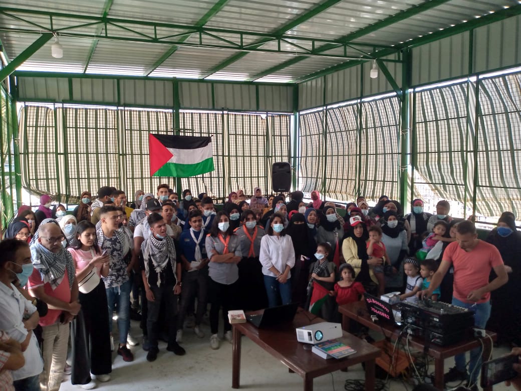 ووسط جو من الحماس والفخر ابتدأ اللقاء بالأهازيج والزغاريد التي تعبر عن مشاعر الاعتزاز من قبل أهالي مخيم عين الحلوة بصمود وتضحيات شعبنا في المناطق المحتلة عام ٤٨.