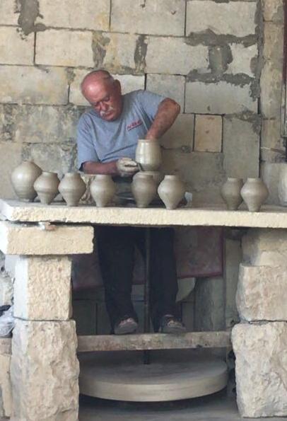 بعدها يأتي دور المعلم، صاحب الخبرة في عملية التصنيع الإفرادية لكل قطعة، عبر قالب دائري يتم تحريكه بالأرجل من خلال آلة تشبه ماكينة الخياطة.