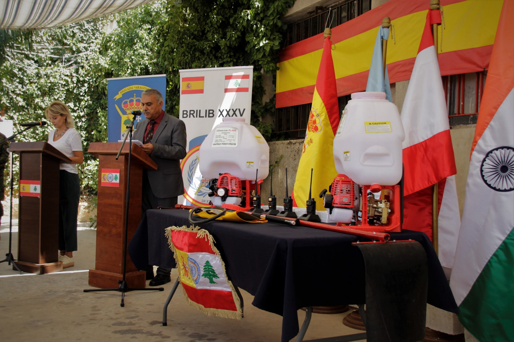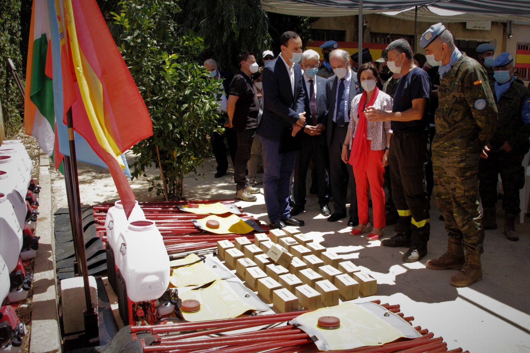 في حفل مختصر ورمزي ، ترأسته وزيرة الدفاع في الحكومة الإسبانية ، مارغريتا روبليس فرنانديز ، مع محافظ النبطية ، حسن فقيه ، تبرعاً بمواد إطفاء لعشرة مراكز للدفاع المدني في شبعا ، راشيا الفخار ، مرجعيون ، القليعة ، الخيام ، الطيبة ، قبريخة ، فرون ، ميس الجبل ، ومركبا.