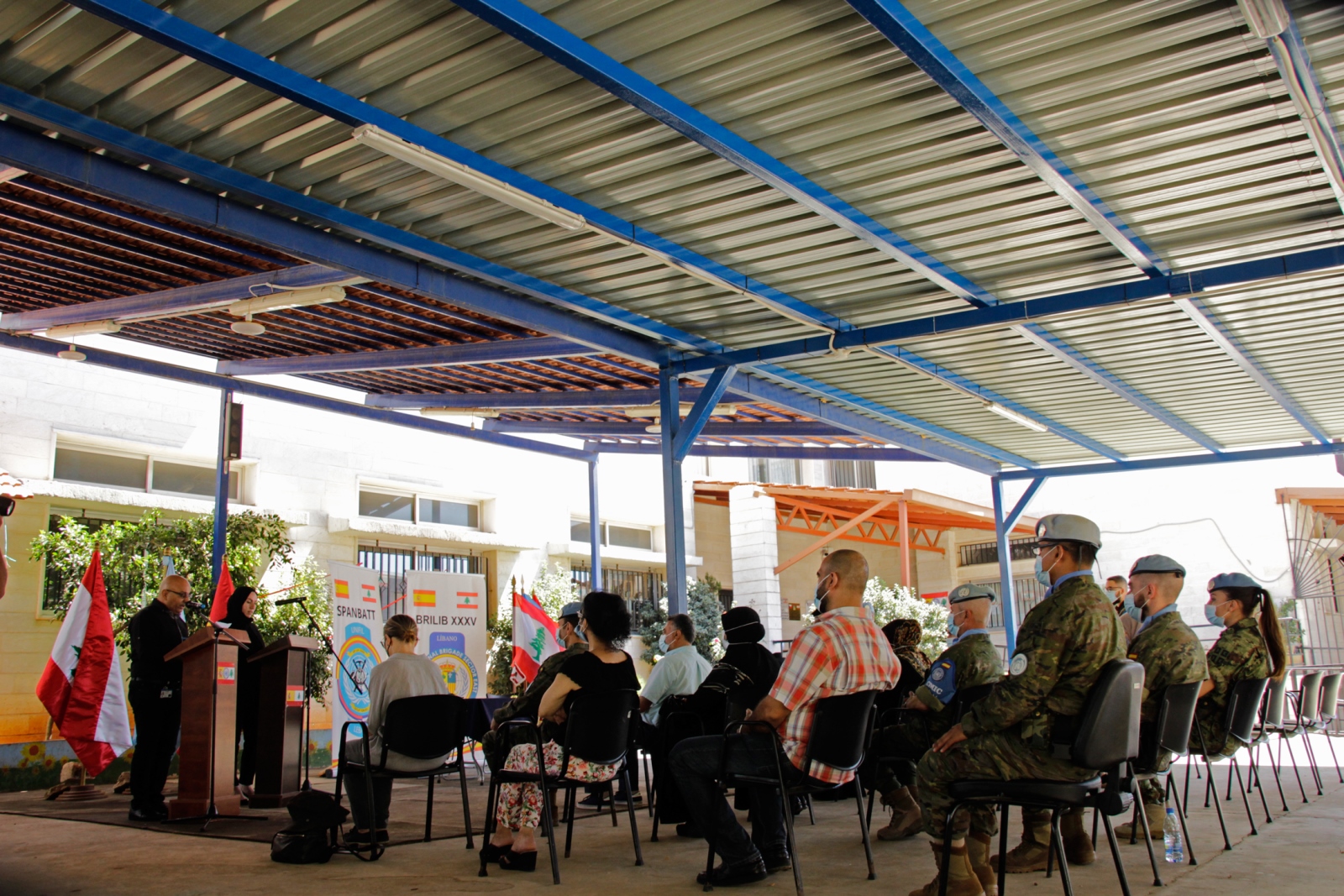 ترأس الحفل رئيس بلدية الخيام السيد عدنان عليان وحضره مديرة المدرسة السيدة نورما زلزلي. ومن جانب اليونيفيل ، ترأس الوفد قائد الكتيبة الإسبانية في الوحدة المتعددة الجنسيات في القطاع الشرقي ، المقدم بيريز مونتيس يرافقه رئيس وخدة الشؤون المدنية - العسكرية بالمقر العام لليونيفيل وممثلة الشؤون المدنية في القطاع.