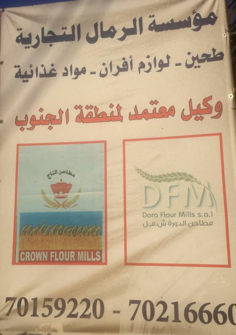 وفي ظل هذا الظلام الحالك الذي يخيم على سماء هذا الوطن المنكوب، كان لمؤسسة رمال للتجارة شهادة مشرفة جديدة في سجل الشرف والوفاء من أبناء هذا الجنوب ، هذه المؤسسة الرائدة في بيع الطحين ومشتقاته على مساحة الجنوب .