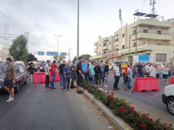 قطع شبان من بلدة القليعة طريق عام مرجعيون أمام محطة "توتال"، احتجاجا على توقيف صاحب المحطة وابنه، بتهمة الاعتداء بالضرب على قاضية.