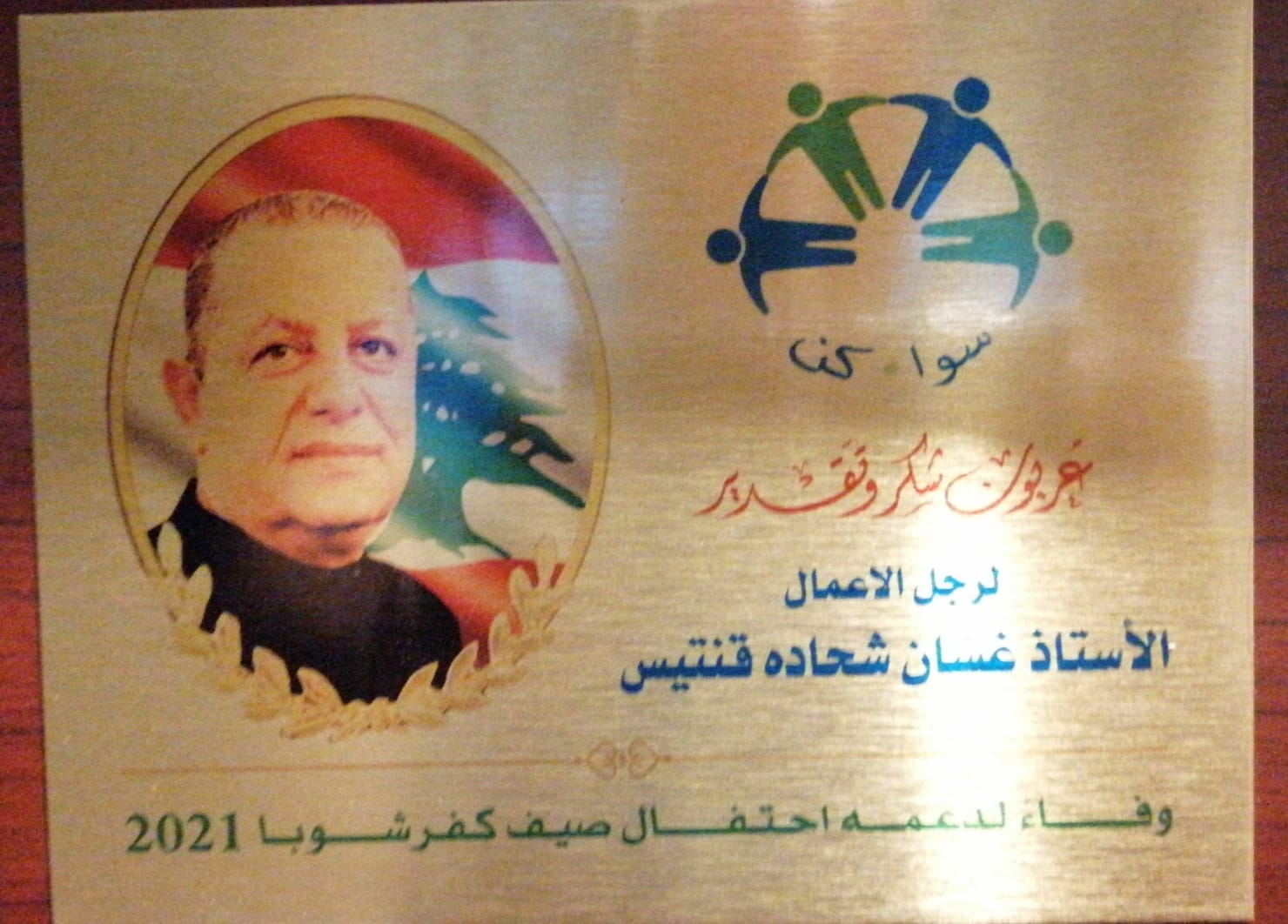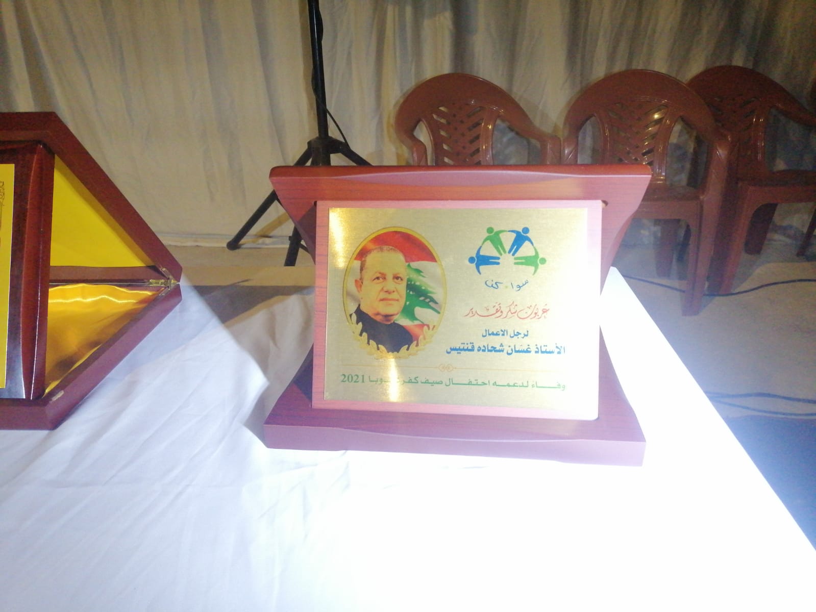وكذلك تم تسليم دروع تقديرية لكل من غسان قنتيس ولرئيس البلدية وللمهندس خالد سويد.