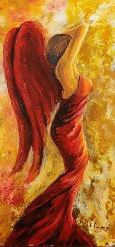 ان المراة في اعمالها سابحة في فضاء اللوحة من خلال الالوان الجميلة و تموجها و مشهد الزهور و الريح في مشهد درامي جميل .
