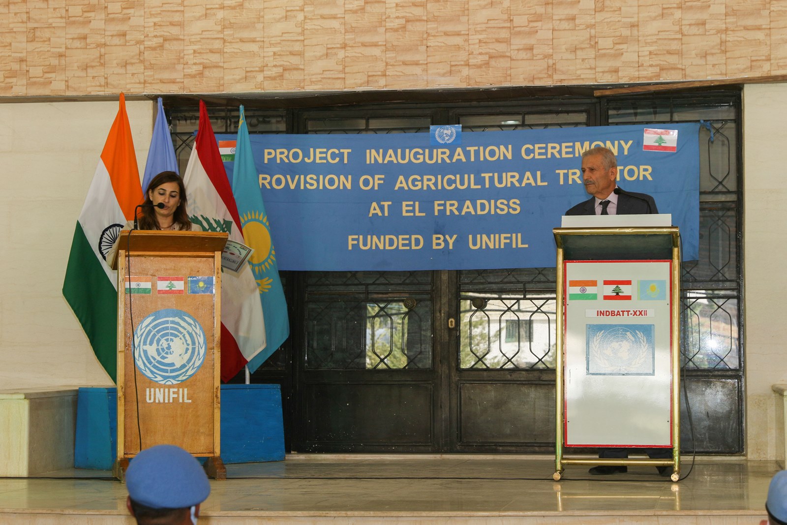 تم تنظيم حفل تدشين الجرار الزراعي في الرابع عشر من تشرين الأول في مبنى بلدية الفرديس، حيث حضره ممثل عن ضباط في الجيش اللبناني، أفراد من اليونيفيل و شخصيات مدنية من البلدة. باسم قوات اليونيفيل، قام العقيد مهفر سينغ جاليوال، بتسليم الجرارالى رئيس بلدية الفرديس، السيد كمال سليقا.