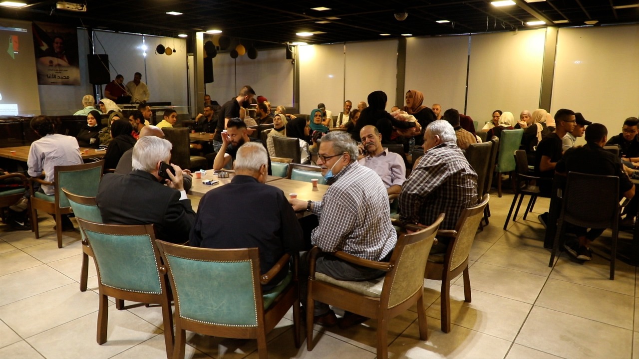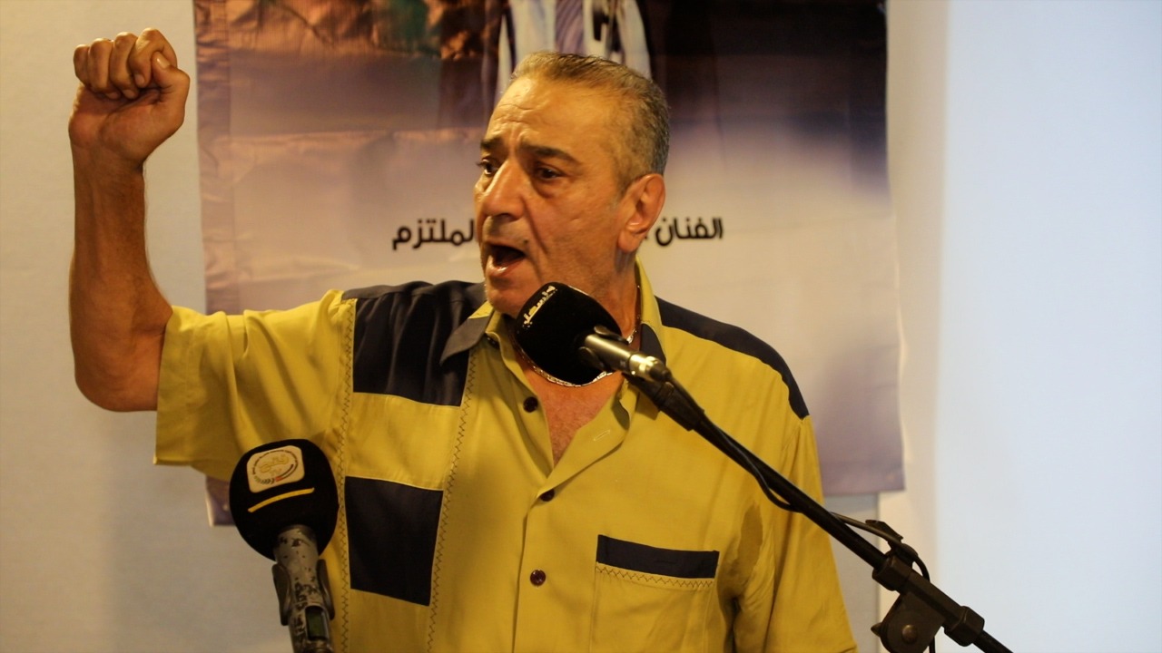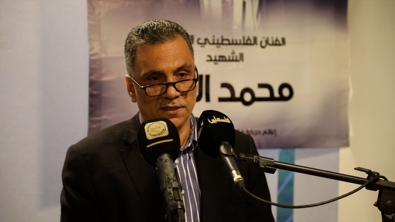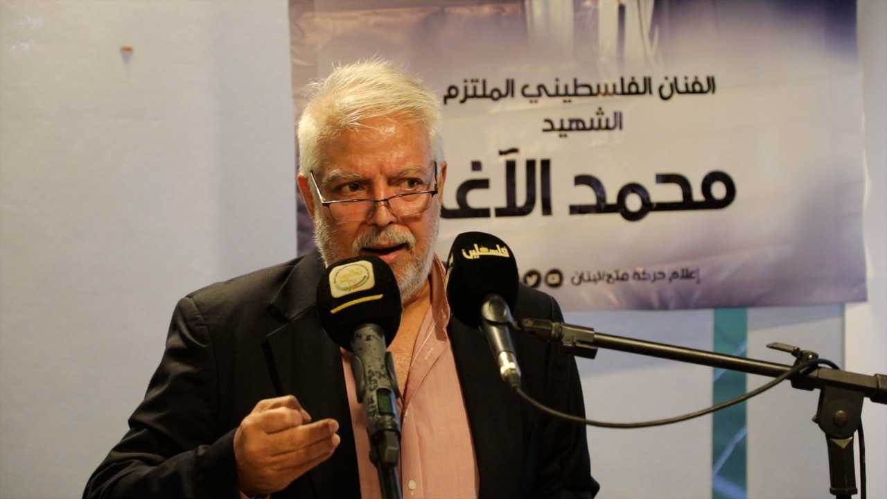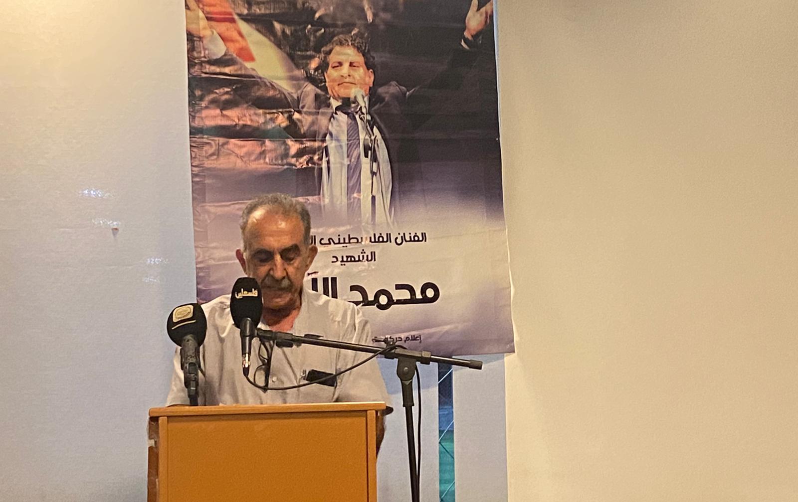 رئيس الاتحاد العام للفنانين الفلسطينيين في لبنان المخرج محمد الشولي كانت كلمته من نوع آخر حيث تحولت إلى مشهدية استحضر فيها الفنان محمد آغا ليحدثه ويهدي سلامه إلى أصدقائه ومحبيه.