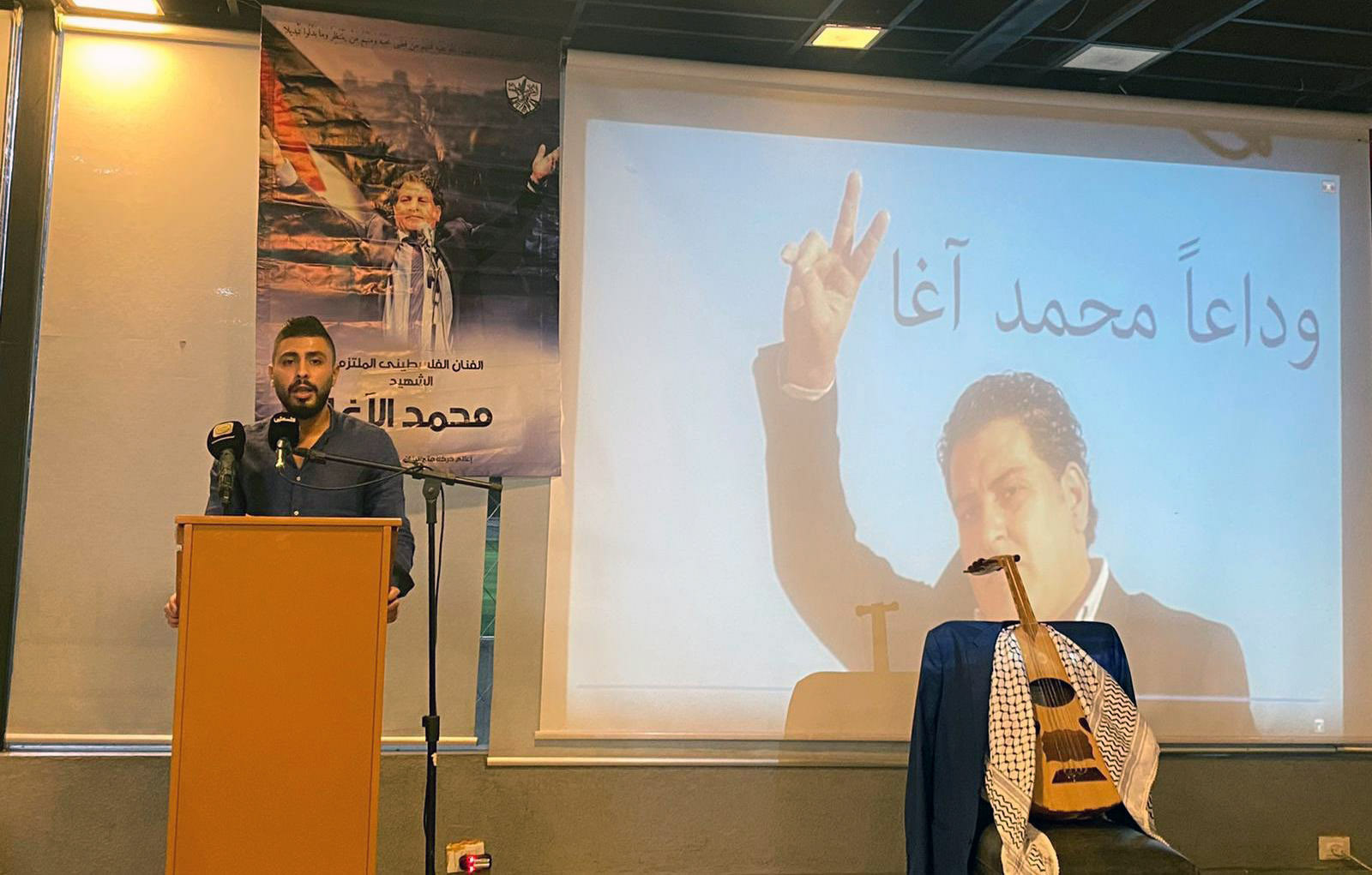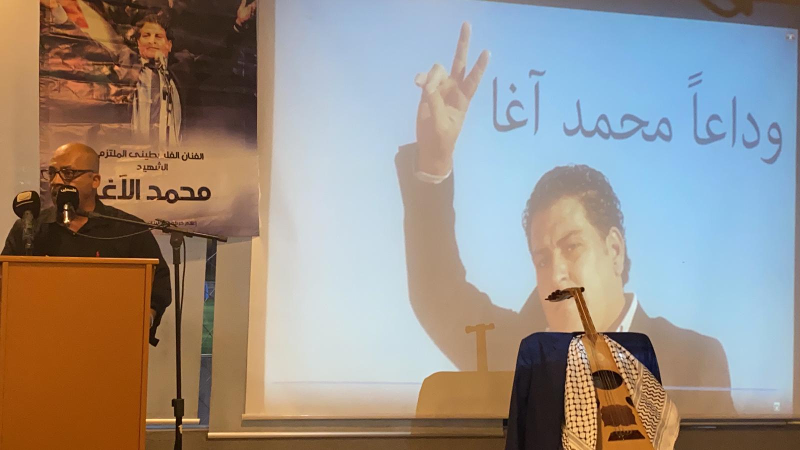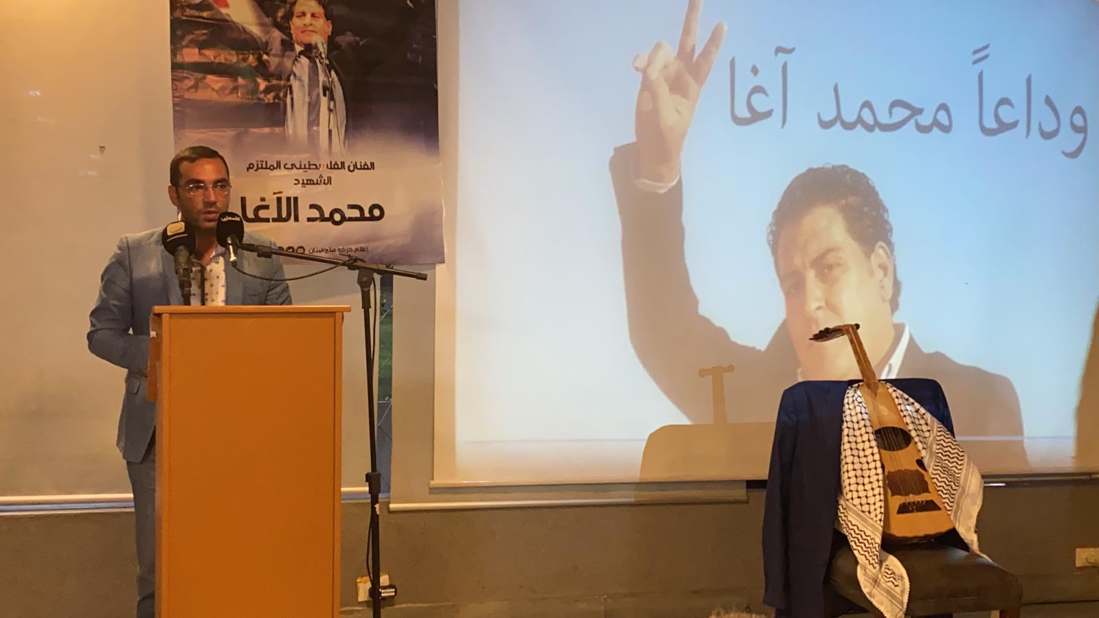 برعاية سفارة دولة فلسطين في لبنان، نظّم الاتحاد العام للفنانين الفلسطينيين في لبنان وسهرة النورس الثقافية حفل ثقافي تحت عنوان "تحية إلى الفنان محمد آغا" وذلك في صالة مطعم غزل في صيدا بحضور سعادة سفير دولة فلسطين في لبنان أشرف دبور مثّله الأستاذ خالد عبادي، عدد من قيادات حركة فتح في لبنان، ممثلون عن الفصائل الفلسطينية والفعاليات الاجتماعية، عدد من المثقفين وعائلة ومحبي الفنان الراحل محمد آغا.