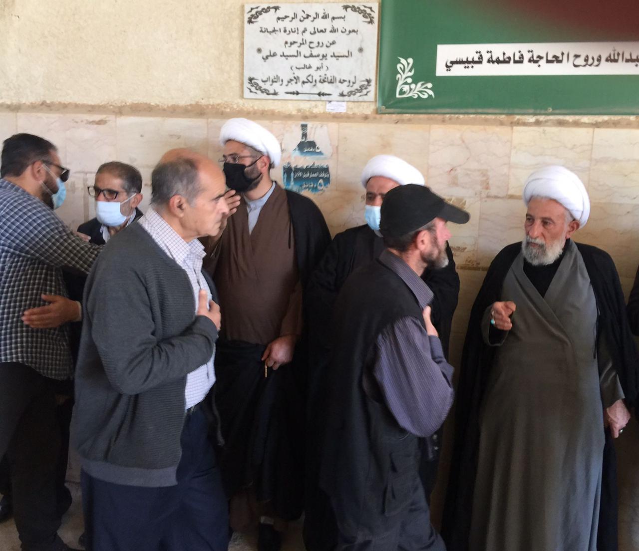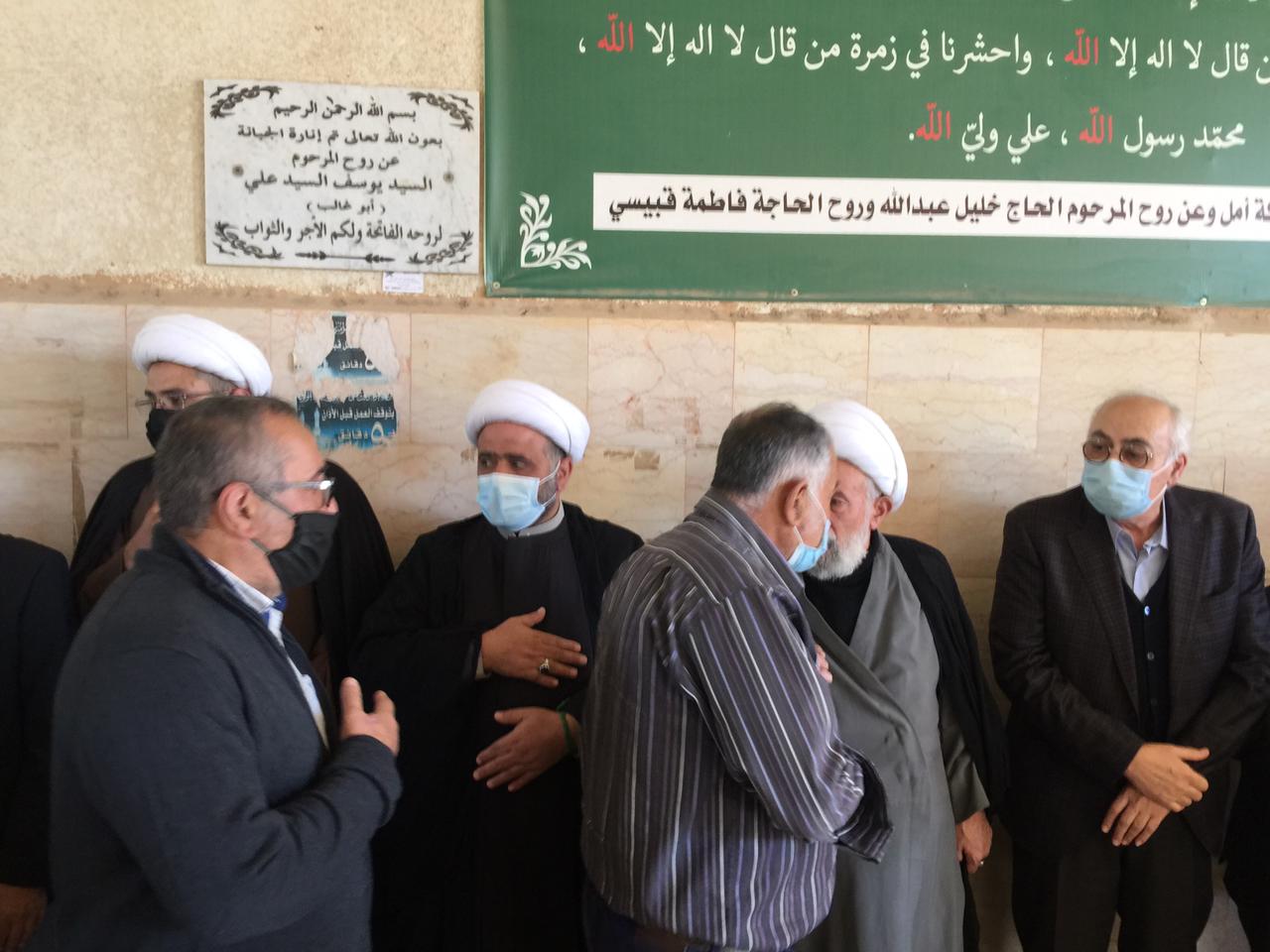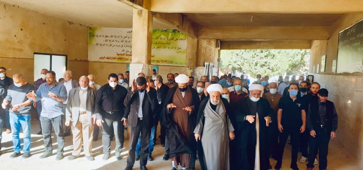 وقد أمّ الصلاة على الجنازة سماحة الشيخ عبدالله الحاج عباس عبدالله (ابن عم الفقيد) وبحضور فضيلة الشيخ محمد باقر عبدالله، وفضيلة الشيخ حسين عبدالله عبدالله، وجمع غفير من أبناء العائلة يتقدمهم نجلا الفقيد وأحفاده، وأبناء أشقائه وشقيقاتها، وأبناء عمومته وعماته، وأنجال أخواله وخالاته، وبقية رهط الفقيد، وعموم أهالي بلدة الخيام ولفيف من الذين يرتبطون بصلة رحم مع الفقيد سواء عن طريق النسب أو المصاهرة من مختلف أصقاع قرى الجنوب والبقاع وبالأخص قضائي مرجعيون وبنت جبيل.