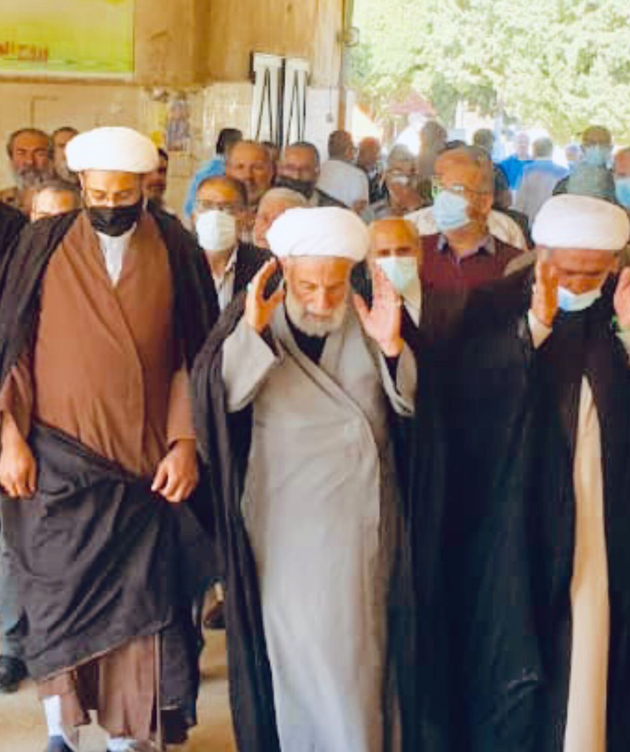 ومن ثم اصطف اصحاب السماحة والفضيلة الشيوخ الكرام بجانب نجلي الفقيد وأحفاده والانسباء يتقبلون صادق المواساة وأليم العزاء من الجمهور الكريم الوفيّ الذي أبى الا ان يصحب الفقيد لأخر لحظة له في هذه الدنيا الفانية.