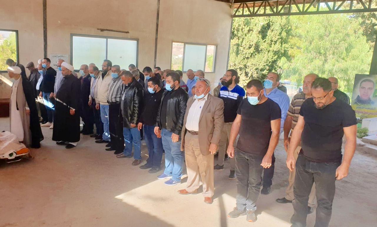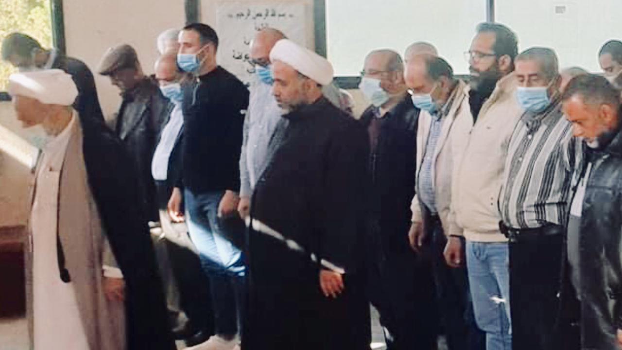 حيث أُقيمت صلاة الجنازة بإمامة سماحة المفتي في باحة الجبانة، بحضور فضيلة الشيخ محمد باقر عبدالله، والعميد (م) حسن خليل إبراهيم إسماعيل عبدالله، ونجلي الفقيدة وشقيقها الأصغر (أحمد - أبو حسين)، وأحفاد الفقيدة، بالإضافة الى الأصهار، الأنساب، الأهل، الأقارب، وأهالي بلدة الخيام الكرام والجوار.