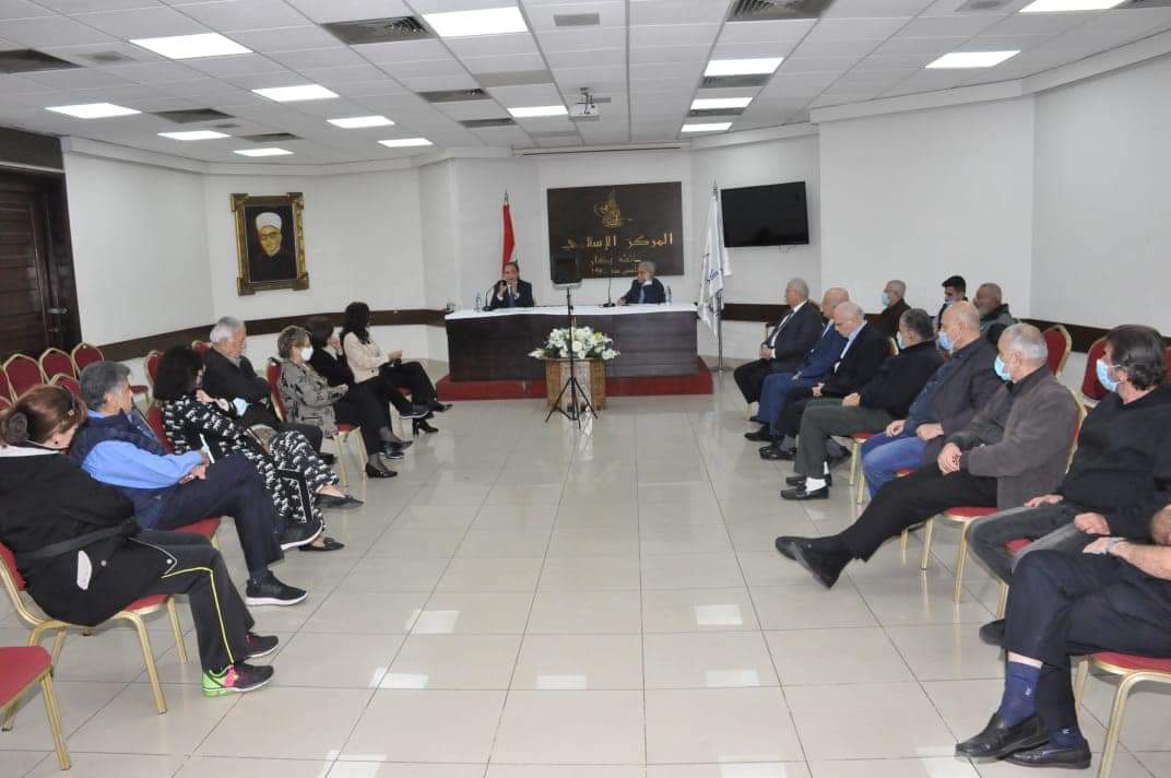 نظم المركز الاسلامي في عائشة بكار ندوة حوارية بعنوان "التحضير لشيخوخة سليمة" للأخصائي بأمراض الشيخوخة الدكتور نبيل نجا حضرها رئيس المركز الإسلامي المهندس علي نور الدين عساف وأعضاء الهيئة الأدارية ، ورئيسة الدائرة النسائية وجمع من المهتمين والمثقفين وممثلو الجمعيات الأهلية والفاعليات الإجتماعية والثقافية والإعلامية .