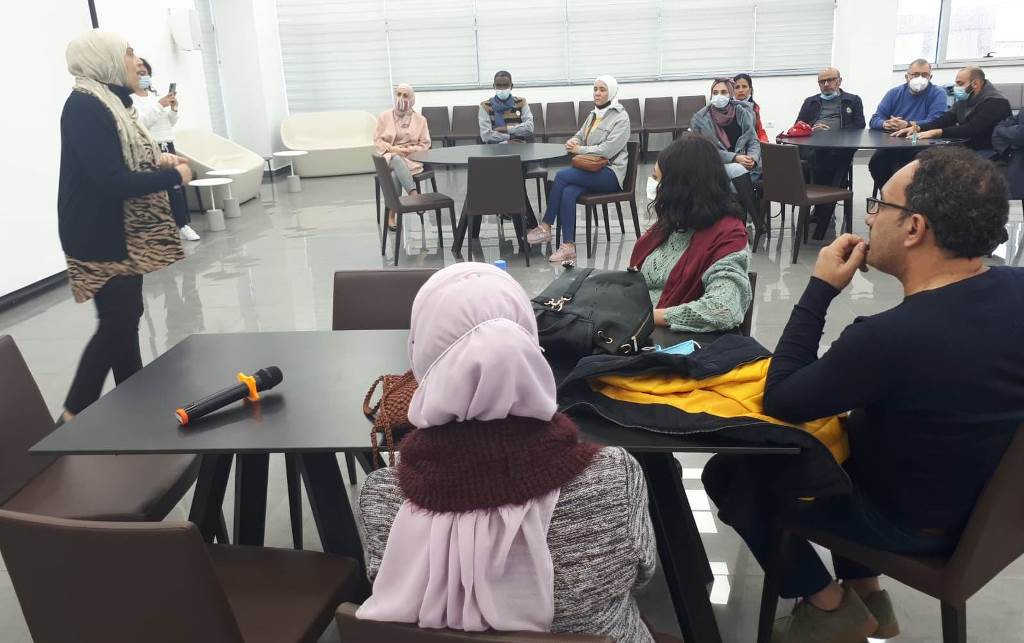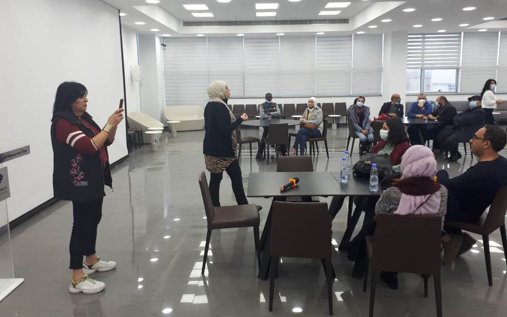 بعد جوله للوفد على أقسام الجمعية المختلفة، عرضت منسّقة المشاريع في الجمعية هدى نقوزي ومنسقه أكاديميه التزيين والأنشطه سميرة بصّار على الحضور أهم المشاريع والدورات التدريبية المنفّذة خلال2021 والمتعلقه بتعليم الكبار.