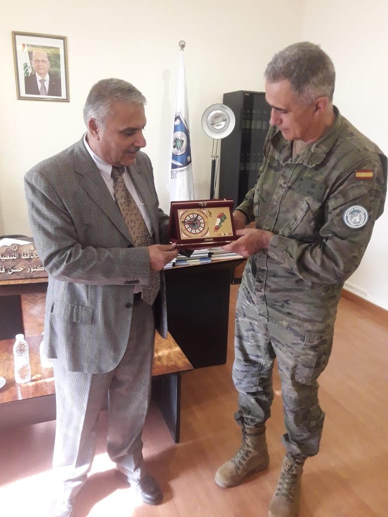 استقبل محافظ النبطية بالتكليف الدكتور حسن فَقِيه في مكتبه قائد القطاع الشرقي الجديد في قوات اليونيفيل الجنرال رامون ارمادا فازكوز وسلفه الجنرال جافييه لالغينو في زيارة تعارف لمناسبه تسلمه مهامه الجديدة بحضور مسؤول مكتب مخابرات الجيش في النبطية العقيد الركن علي اسماعيل .