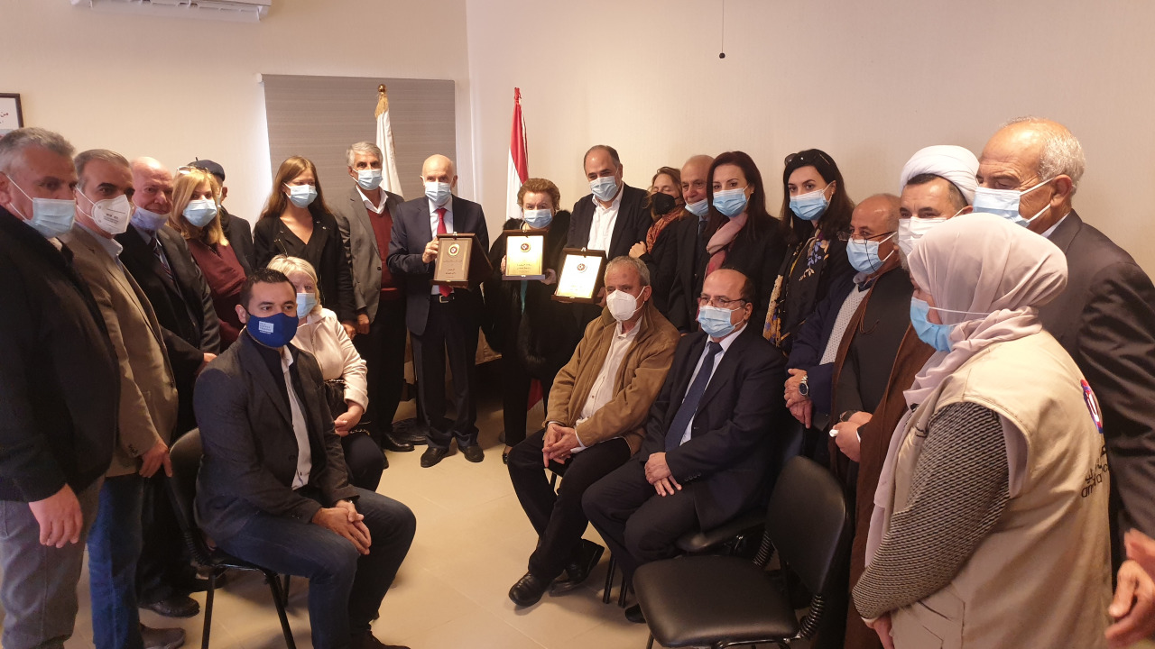 وفي الختام قدم الدكتور مهنا دروعاً تقديرية لكل من السفيرة عيدي ونجلها المهندس رامي عيدي والمهندس أيمن عواضة واختتم اللقاء بحفل كوكتيل على شرف الحضور، كما قامت السفيرة عيدي والدكتور مهنا بزراعة شجرة أرز في حديقة المركز.
