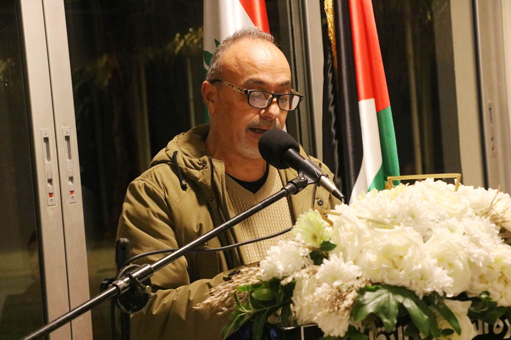 كلمة سفارة دولة فلسطين في لبنان ألقاها خالد عبادي وقال: لا يسعني إلا أن أرحب بمعالي وزير الثقافة اللبناني الذي لمسنا عبر كلماته روح وعبق فلسطين في كل ثنايا كلماته، وأود أن أشكر سهرة النّورس الثقافية وأبارك لهم مرور عشر سنوات على تأسيسها وأعتبر هذه السهرة أصبحت ركن أساسي في الثقافة الفلسطينية في لبنان، بل هي الوجه الحضاري الذي نعتز به جميعاً، وهذا الوجه الحقيقي للشعب الفلسطيني على الرغم من كل المآسي وكل ما نتعرض له، ولكننا باقون على ثقافنا ونعتز بالتمسك بها.