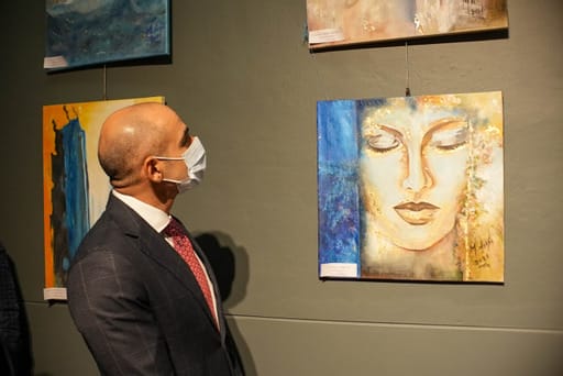 واشارت إلى ان "عنوان المعرض هو مزيج ثقافي متنوع من رسم ونحت وشعر".