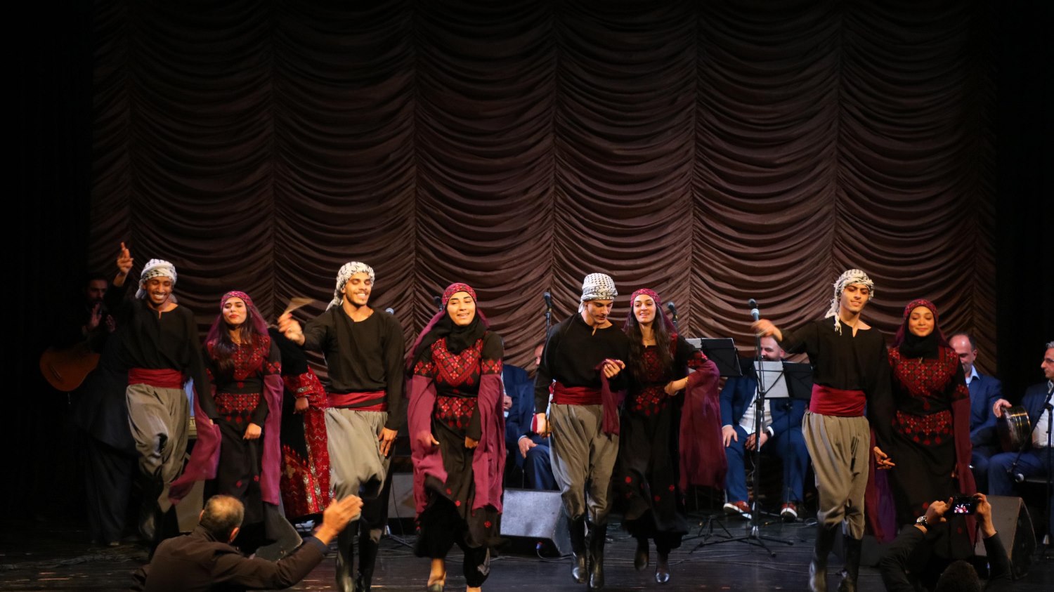 فرقة السنابل للتراث الشعبي وفرقتة البيادر للفنون الشعبية قدمتا لوحات فولكلورية راقصة على أنغام الأغاني الفلسطينية التي امتزجت بألوان الزي التراثي الفلسطيني.